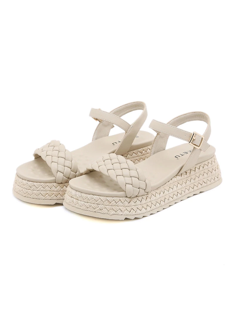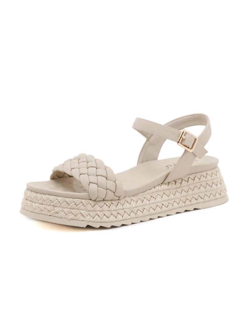 Featuring a neutral design and braided strappy details, these espadrille inspired sandals will soon become your go-to warm weather shoes..