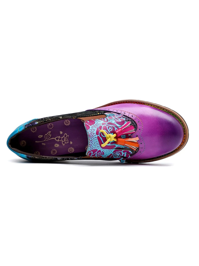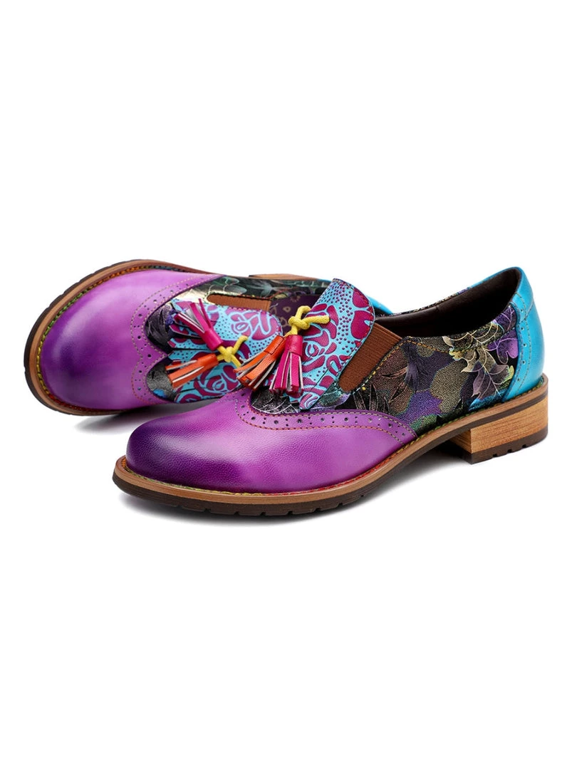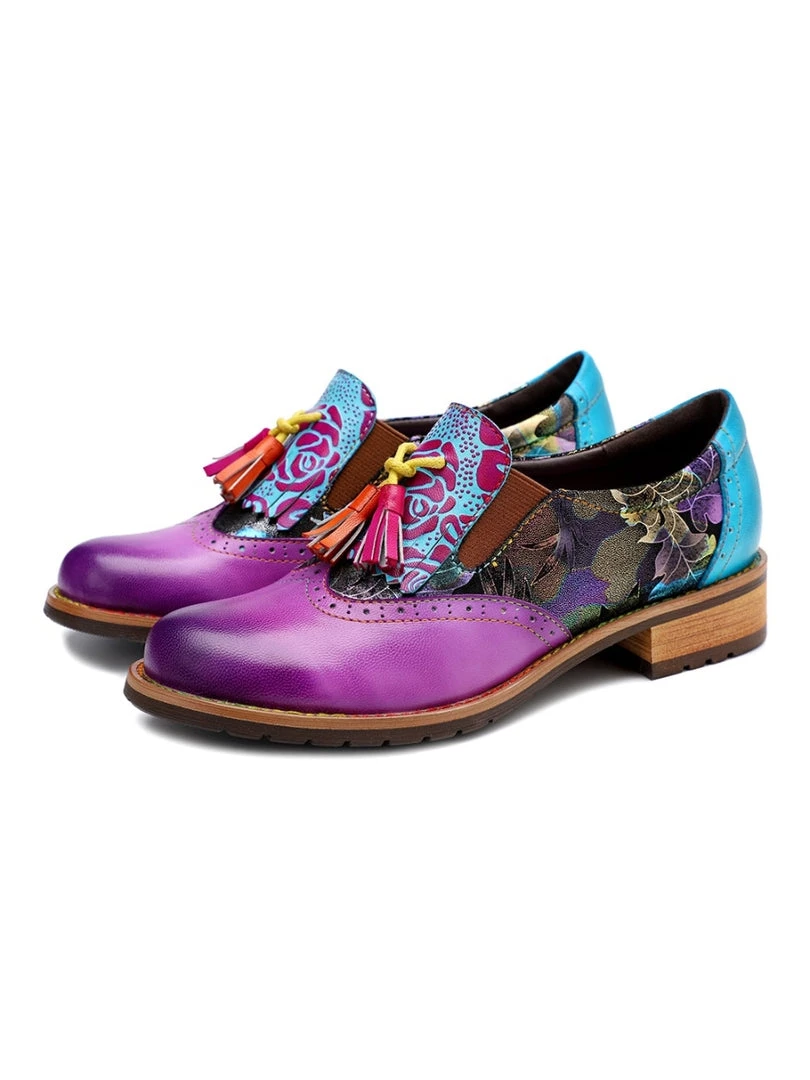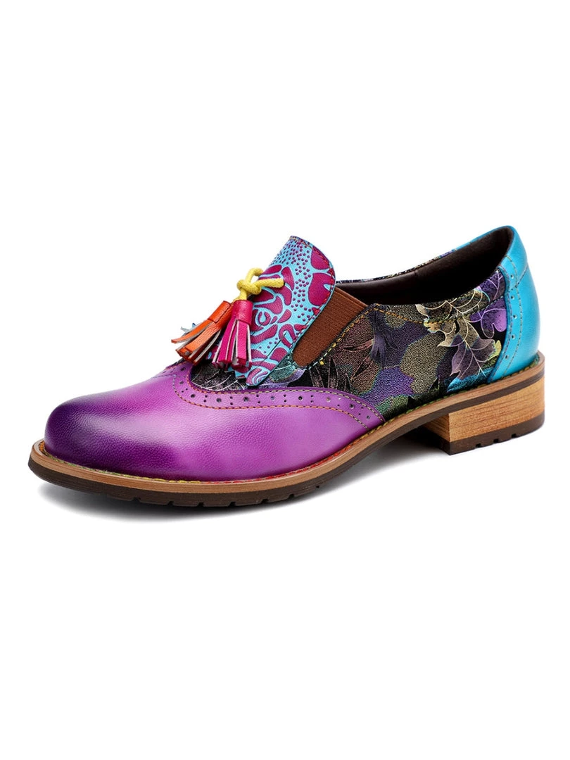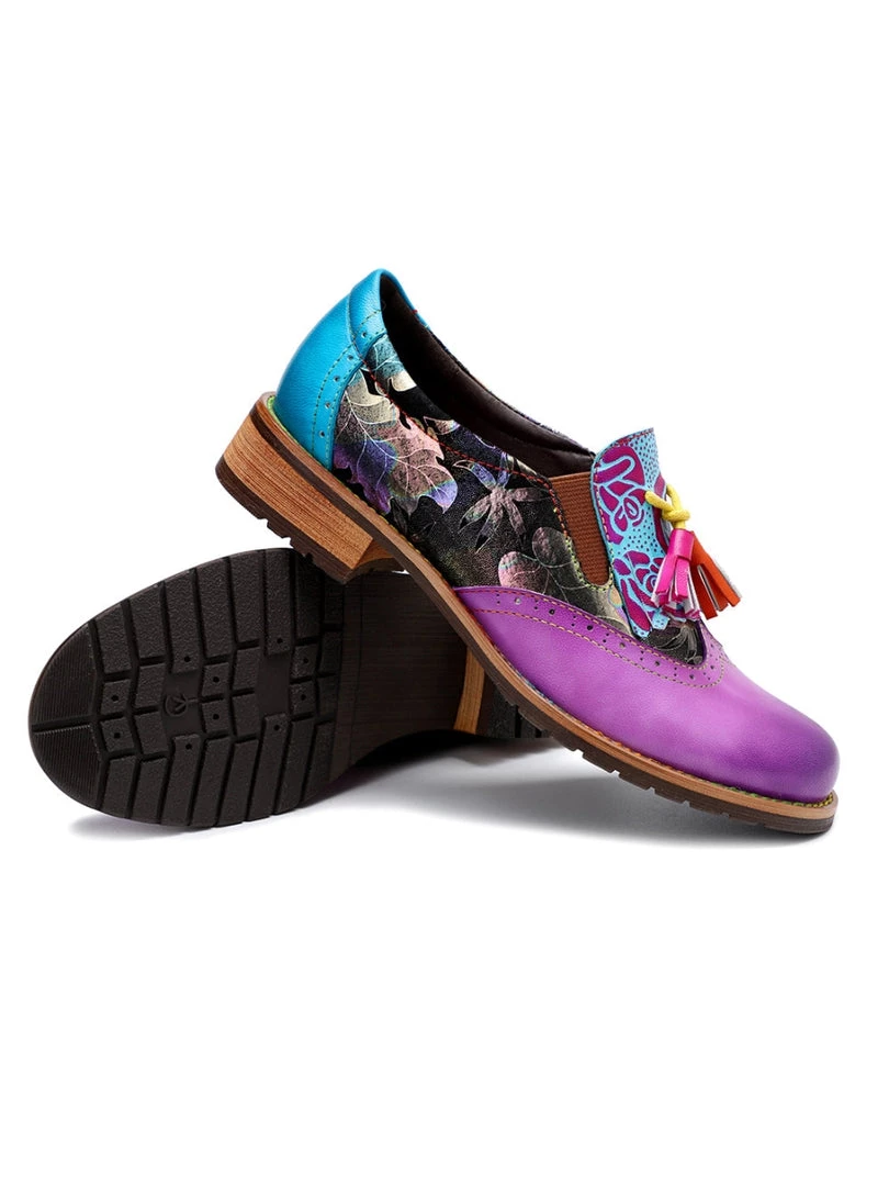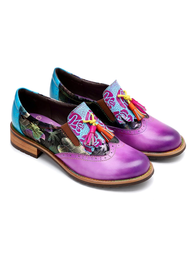 Add a sweet finish to your ensembles by slipping into these vintage-inspired Oxford crafted with eye-catching embossing and an abstract-print buckled strap.