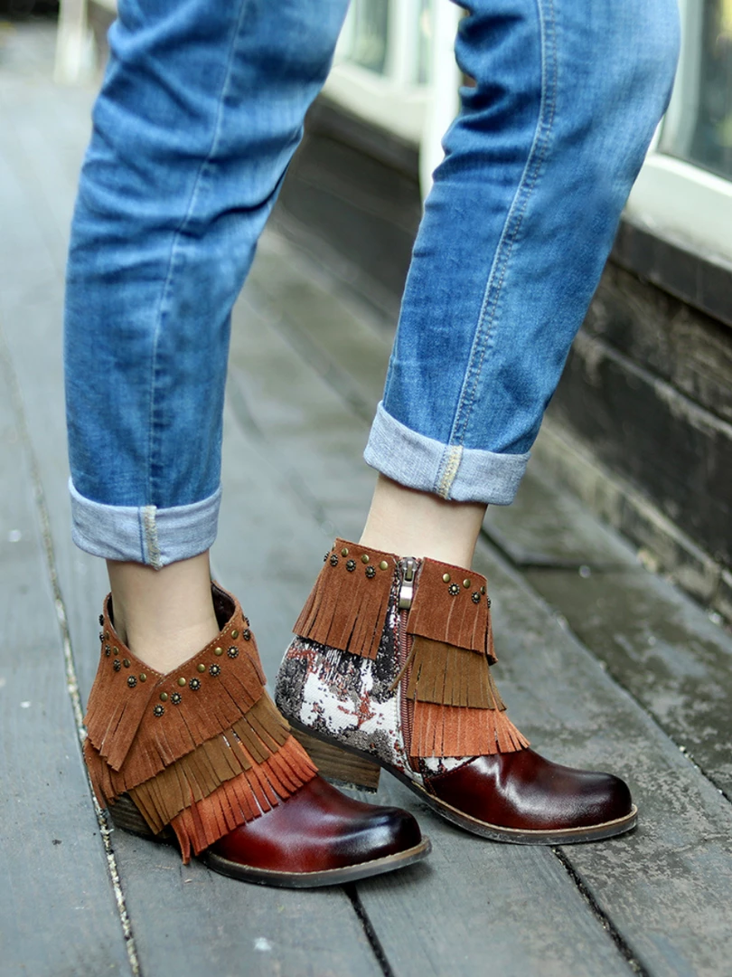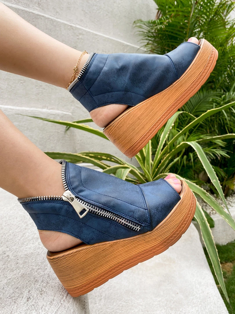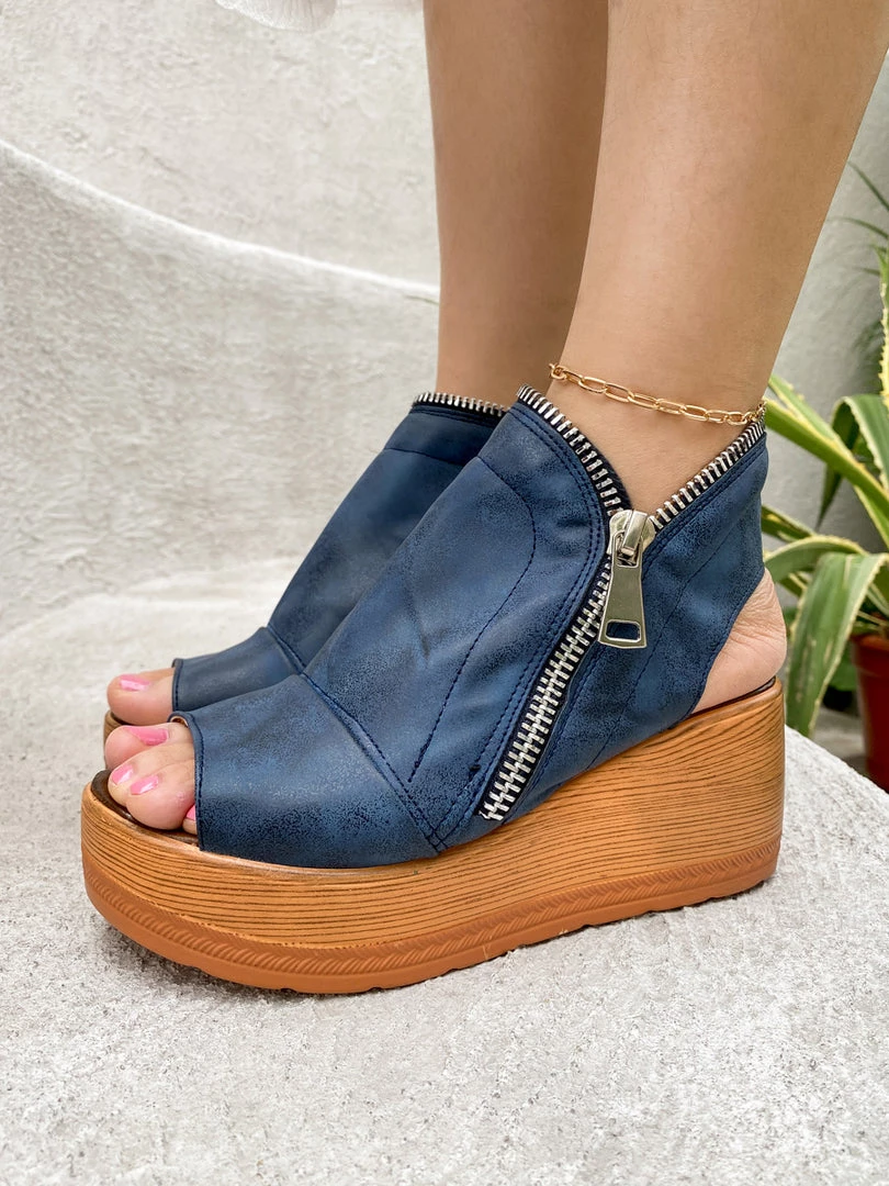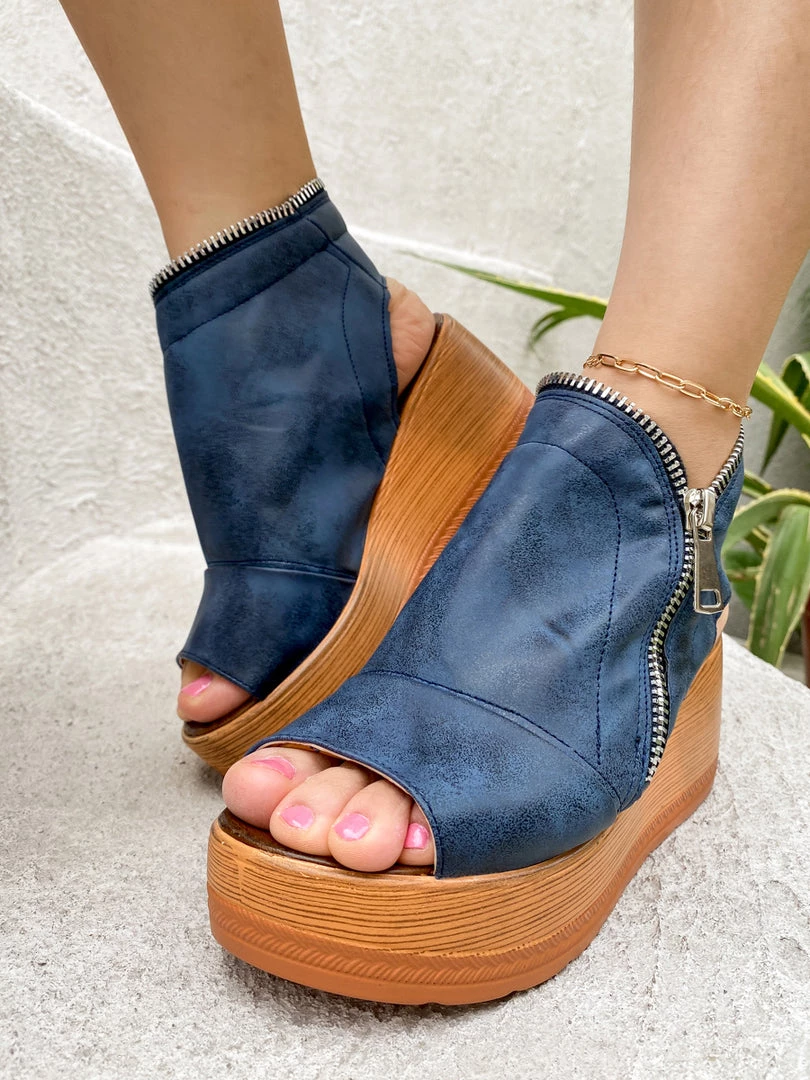 Grant a signature statement to your strut in this wedge boot that features a ankle and side zipper design for chic looking and soft upper for beautiful aging.