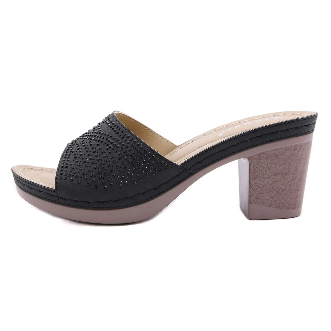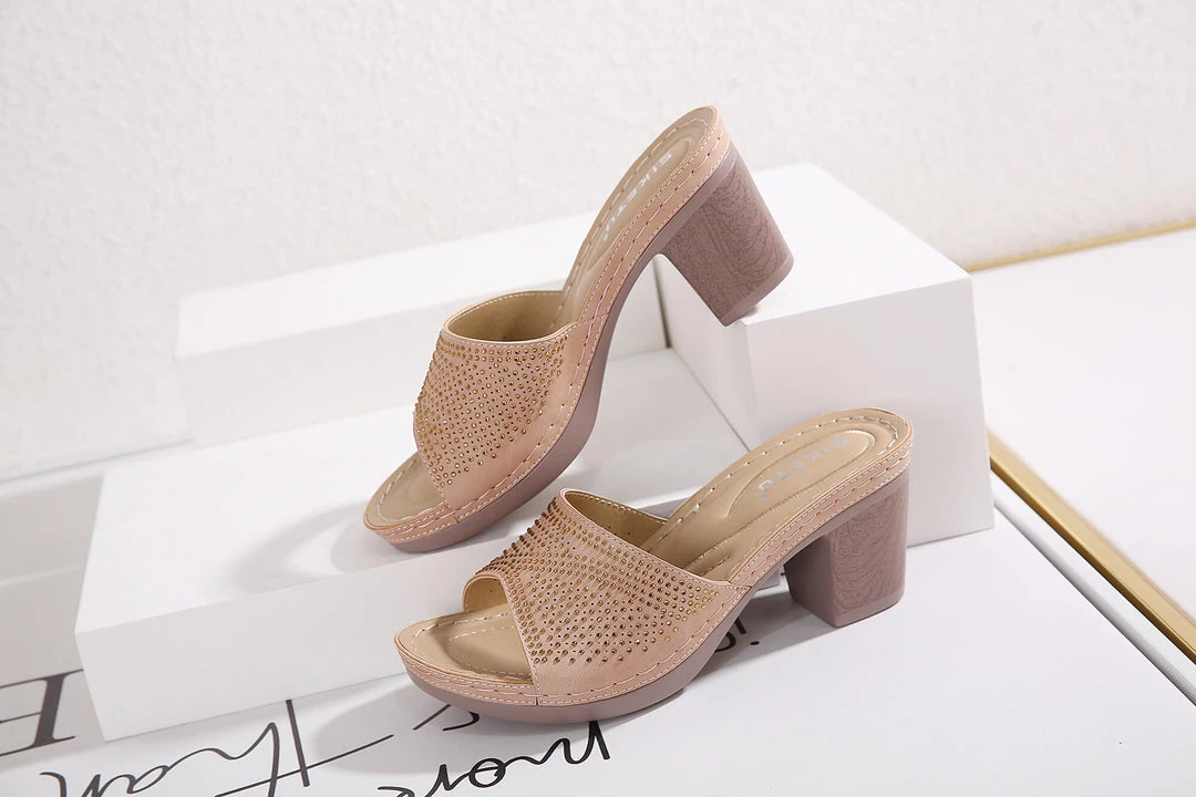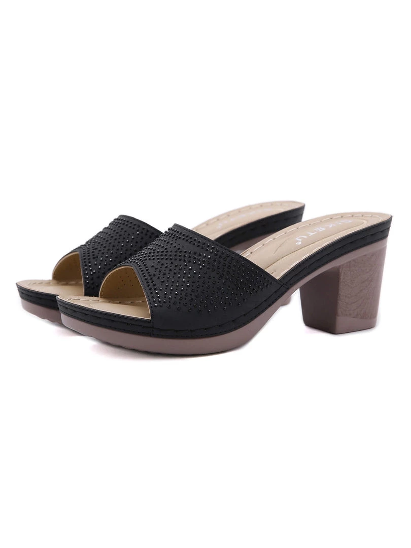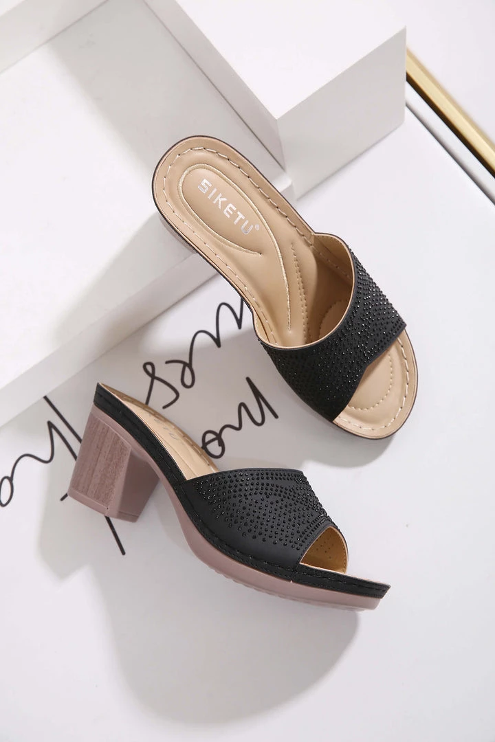 Studded accents along the outside footbed provide added oomph to this sandal, while glittering rhinestones dazzle across its upper.