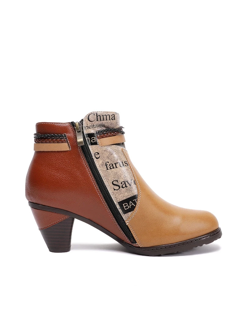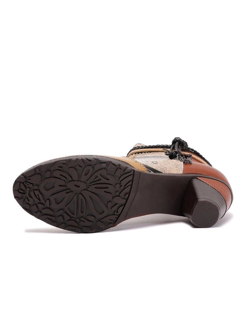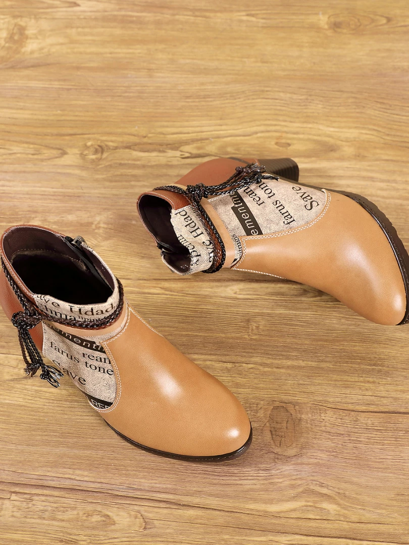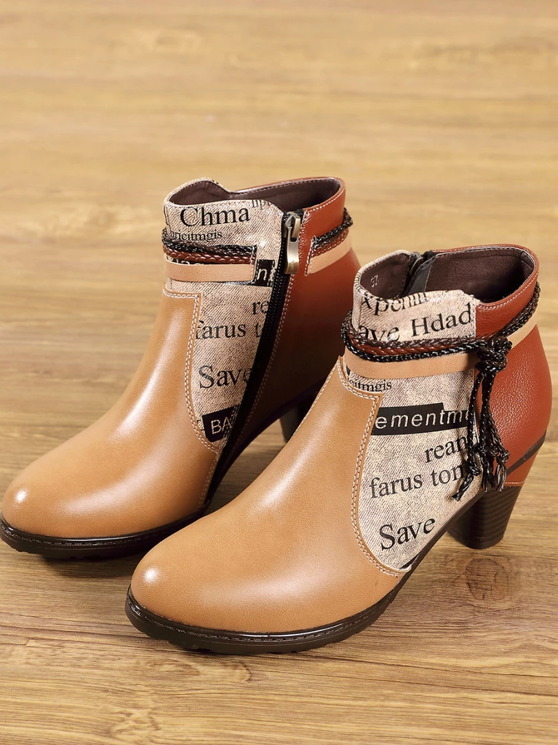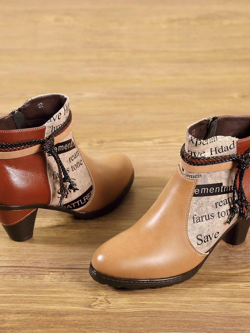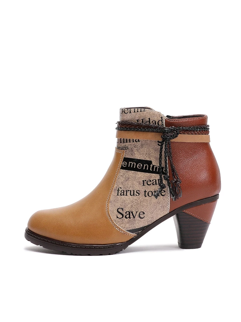 Invite a touch of vintage-inspired flair into your look with this statement pair of leather booties complete with an array of prints and a tassel that crosses over the front.