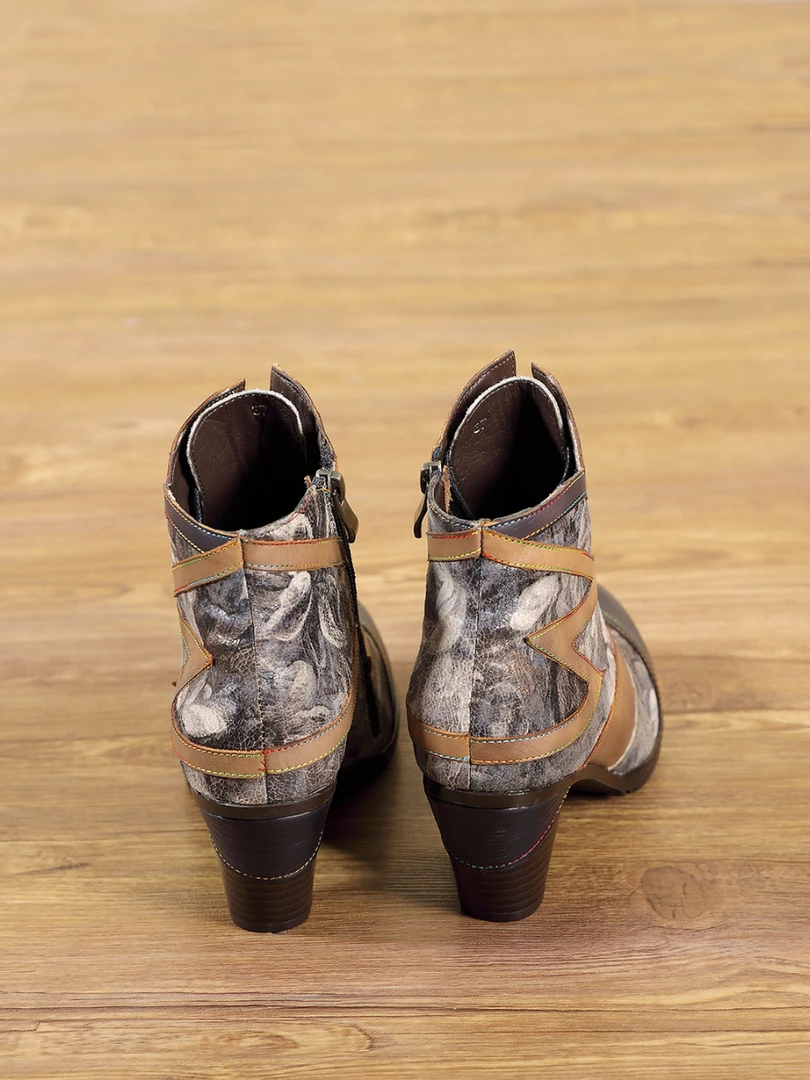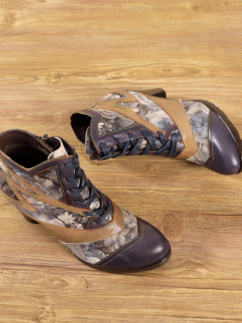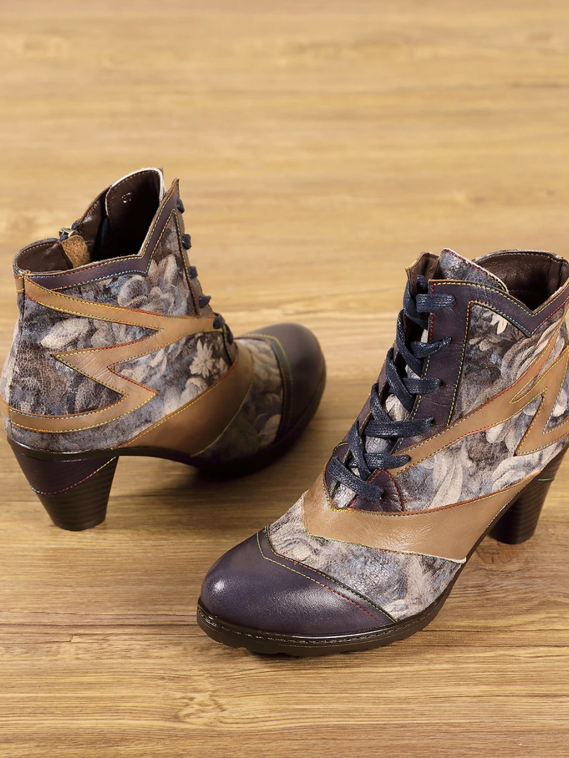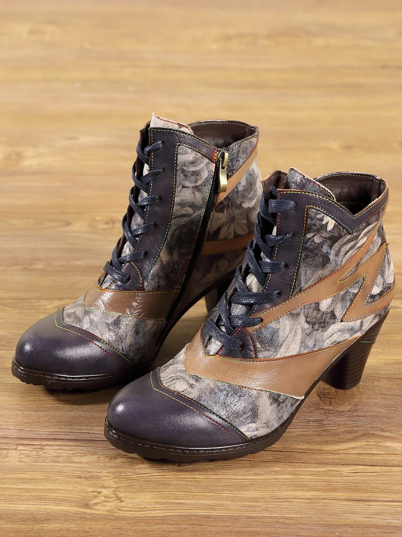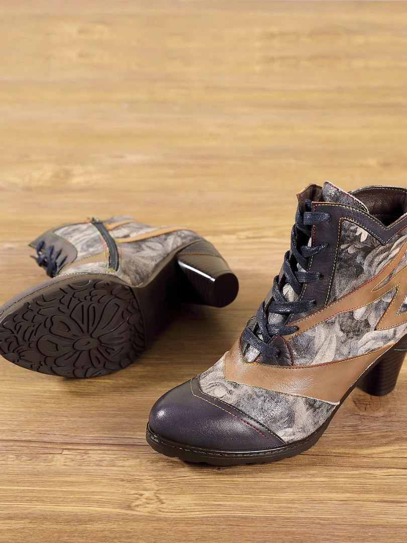 Vintage-inspired vibes when you step out in this chic pair of lace-up ankle boots boasting a supple embossed leather design.