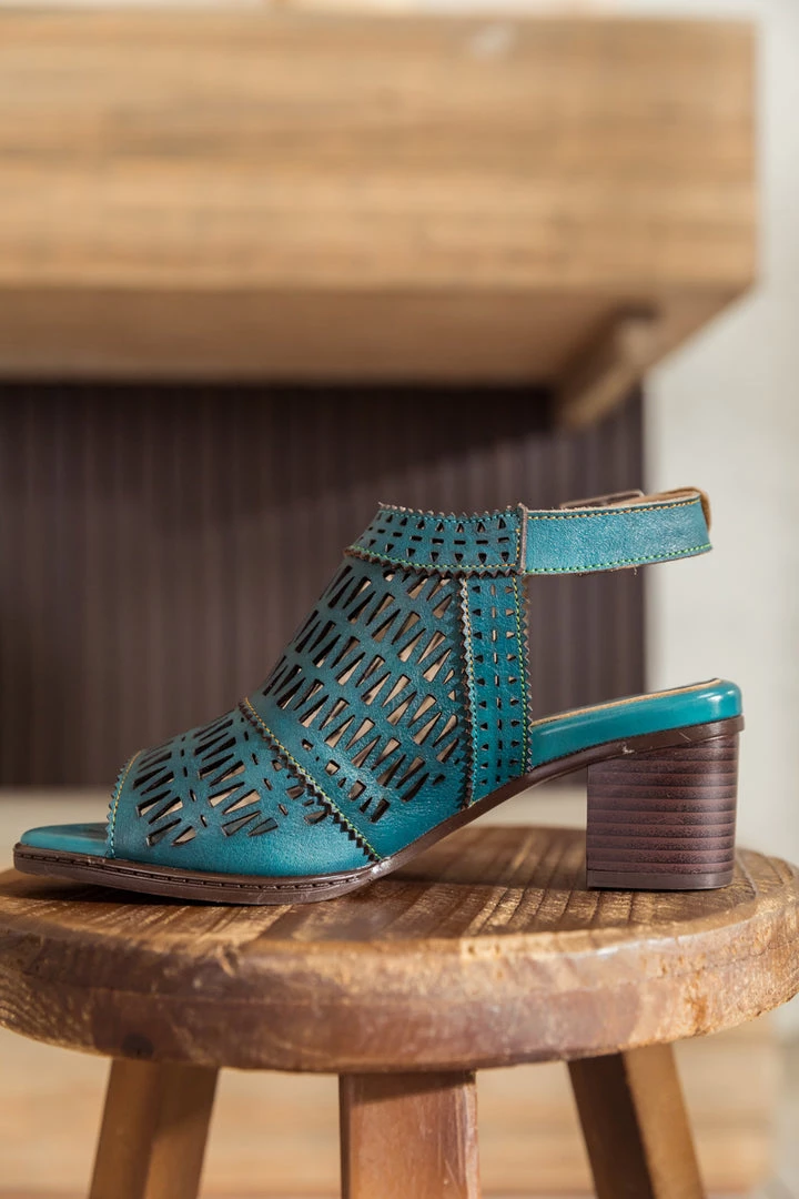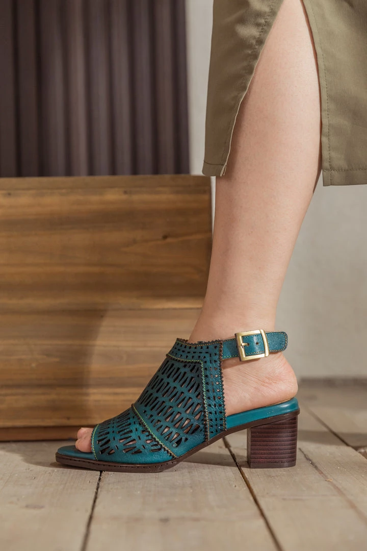 Bring an artistic touch to your ensemble with these vibrant leather sandals featuring a perforated details and a durable sole for all-day wear.