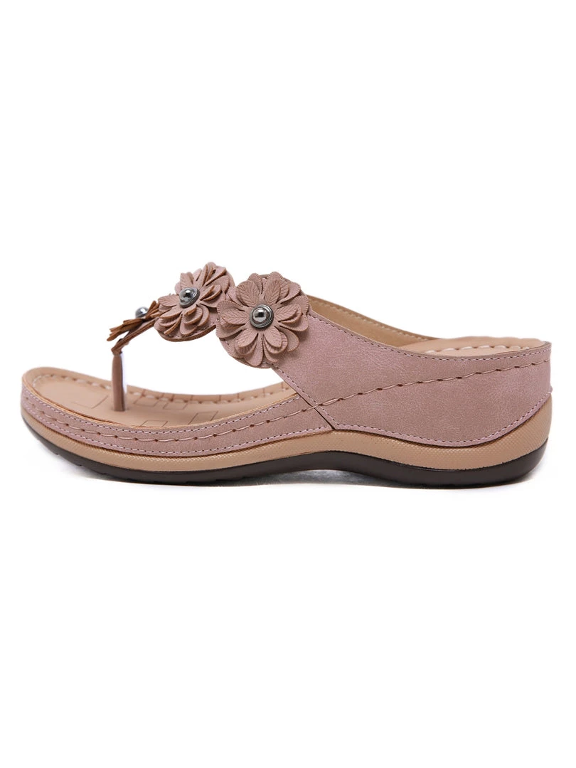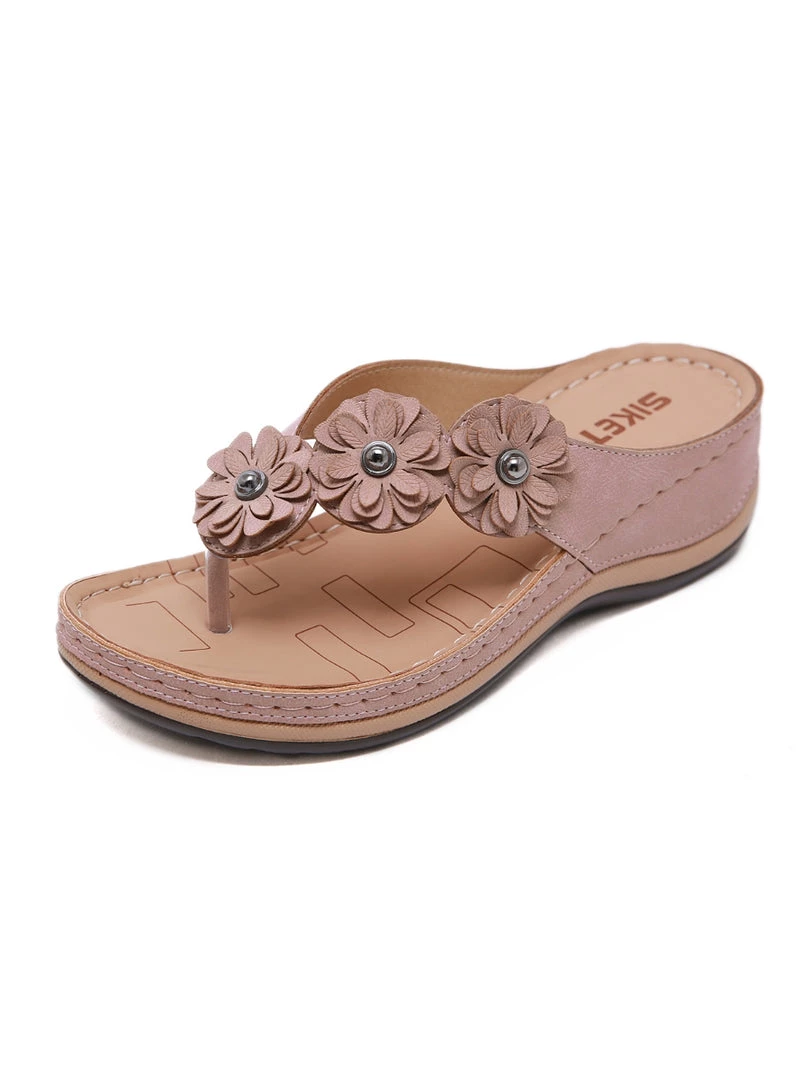 Imbue your ensemble with feminine flair by donning this Y-strap sandal sporting floral accents along the upper.