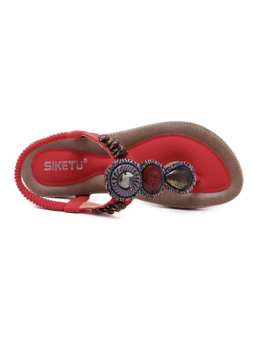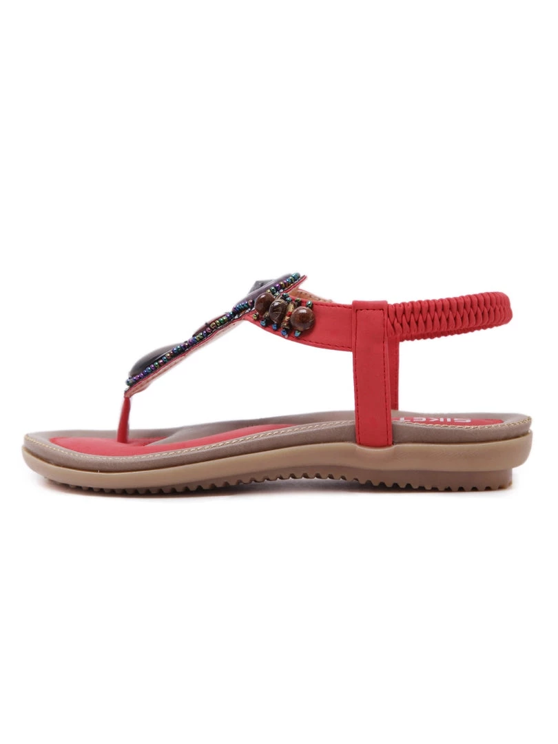 Finish ensembles with eye-catching detail thanks to the bold embellished straps of these comfortable sandals. An anti-skid sole adds ground-gripping traction to her steps..
