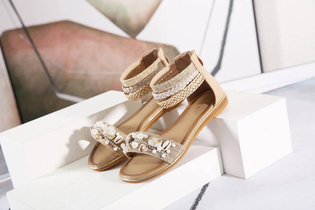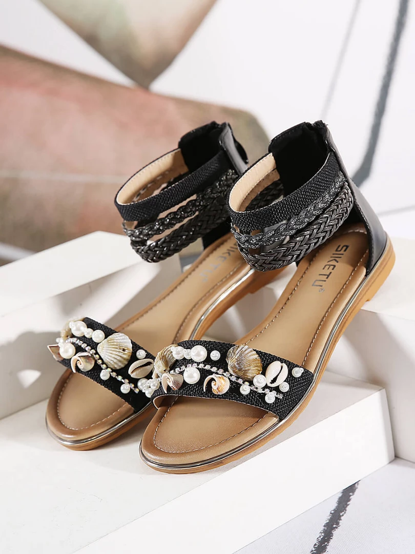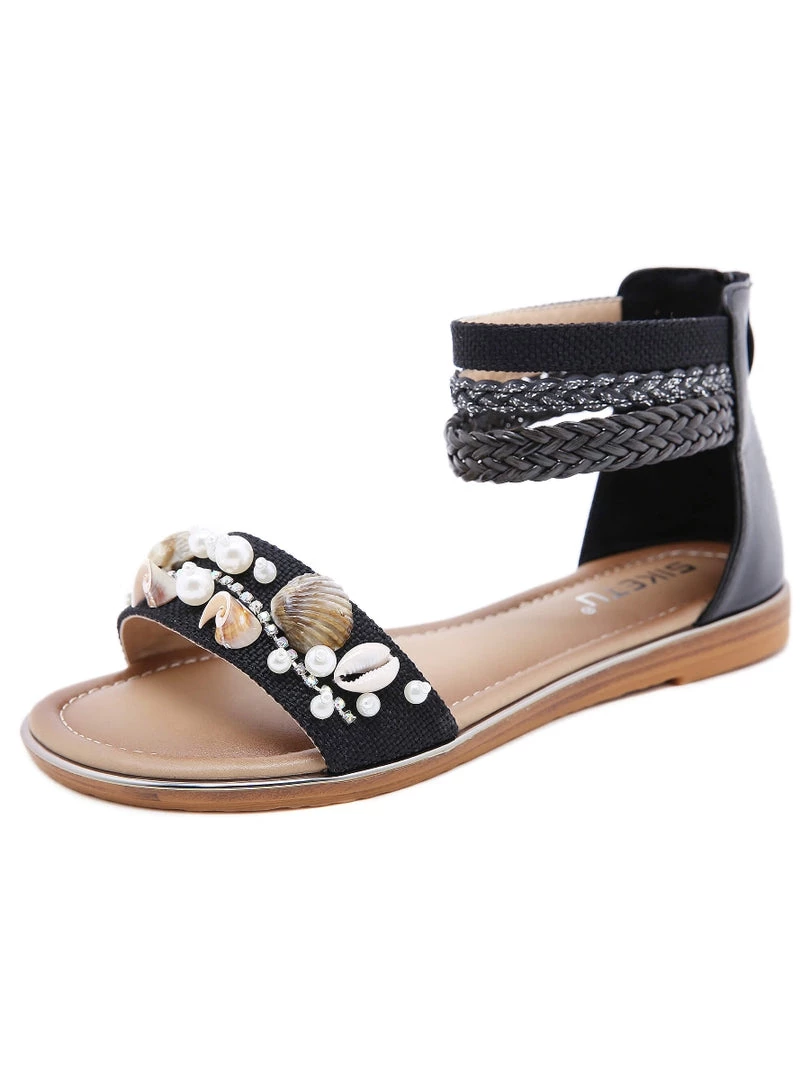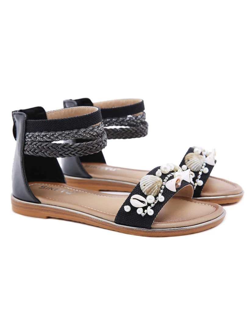 Put a little sparkle in your sunny-weather style with the dazzling shell and conch accents of these airy sandals.