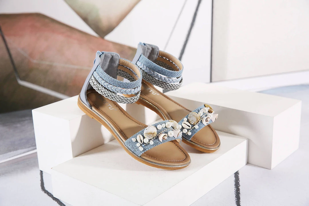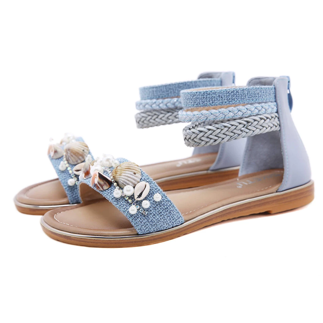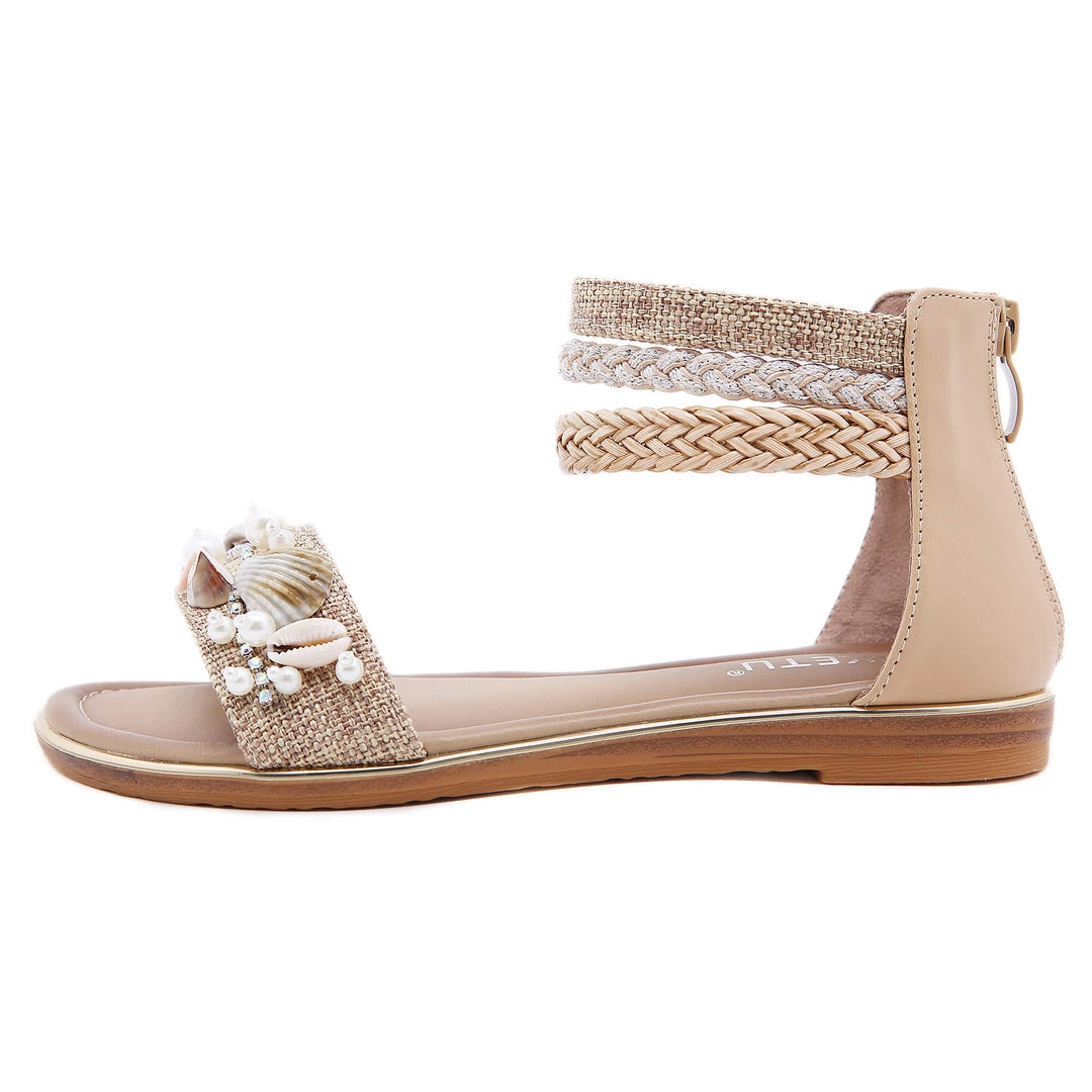 Put a little sparkle in your sunny-weather style with the dazzling shell and conch accents of these airy sandals.