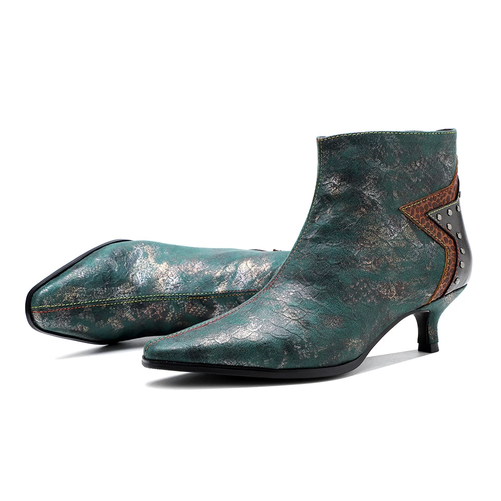 Give your footwear cabinet a rock boost with this slightly-lifted stud back bootie showing off a rock and roll.