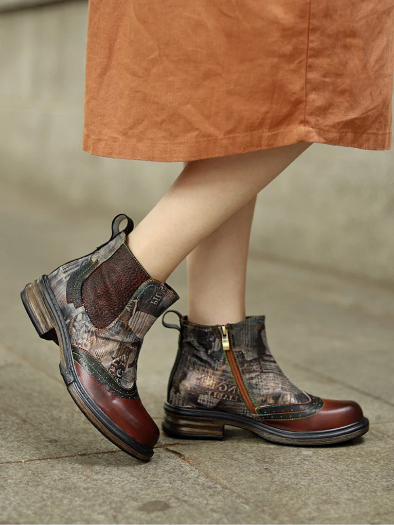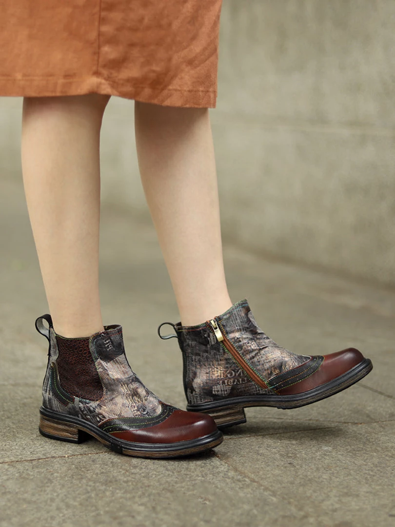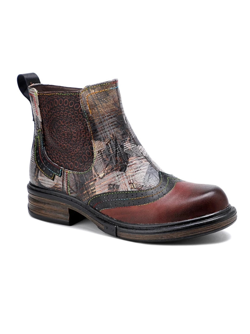 Revamp your boot rotation with this classie chelsea style leather pair boasting contrast shafts and chunky treaded soles for stylish strides that pair effortlessly with jeans or leggings.