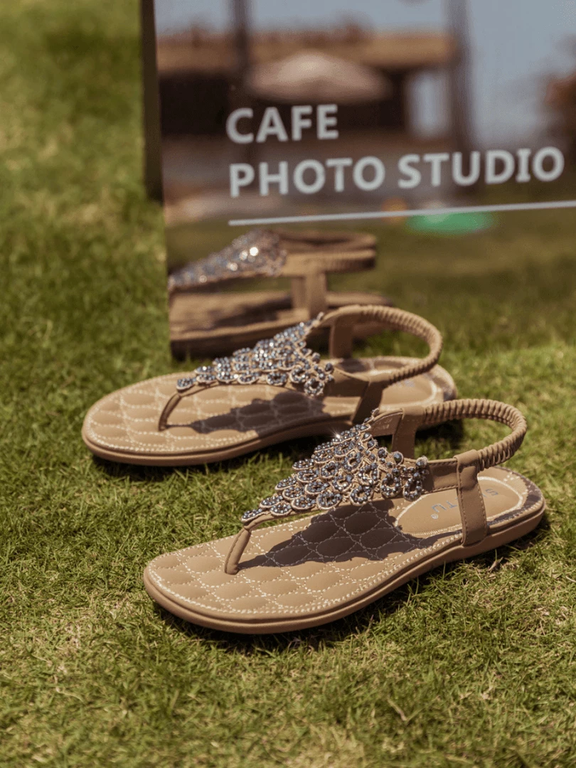 Put a little sparkle in your sunny-weather style with the dazzling crystal accents of these airy sandals.