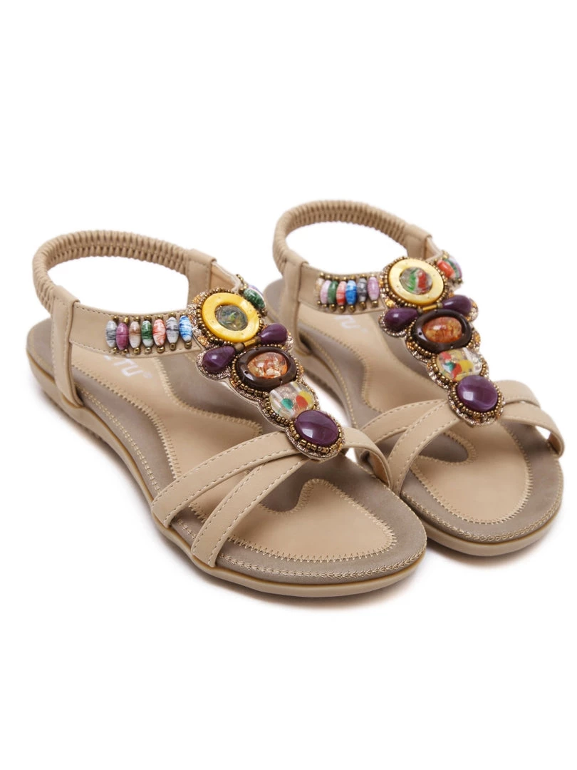 Add eye-catching detail to ensembles with the bold embellished straps of these comfortable sandals. An anti-skid sole provides ground-gripping traction.