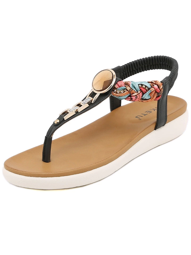 Finish ensembles with eye-catching detail thanks to the bold embellished straps of these boho inspired sandals. An anti-skid lightweight sole adds ground-gripping traction to her steps.