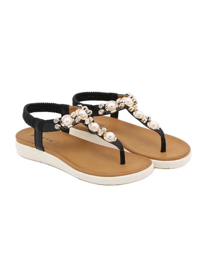 Put a little sparkle in your sunny-weather style with the dazzling pearl accents of these ultra lightweight slingback sandals.