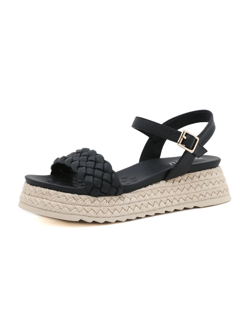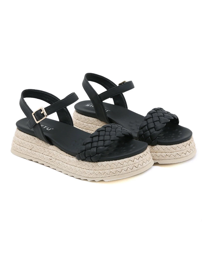 Featuring a neutral design and braided strappy details, these espadrille inspired sandals will soon become your go-to warm weather shoes..