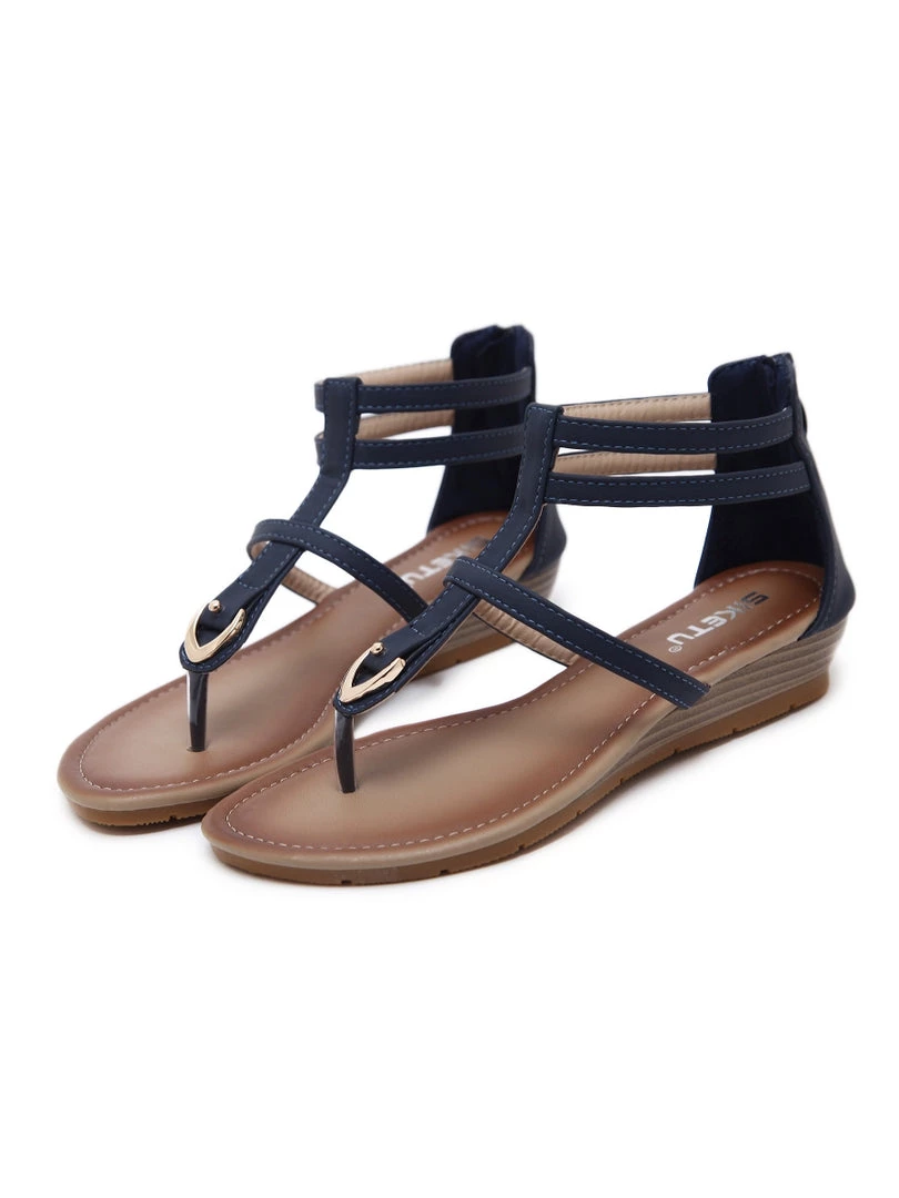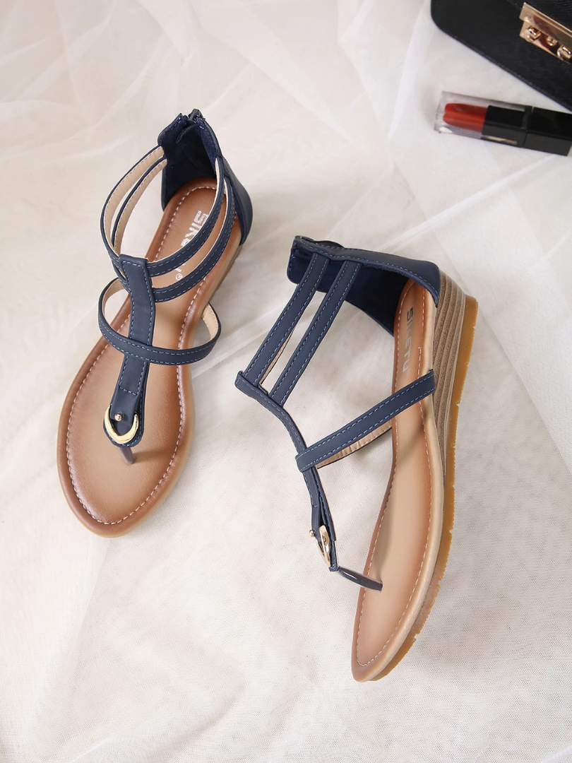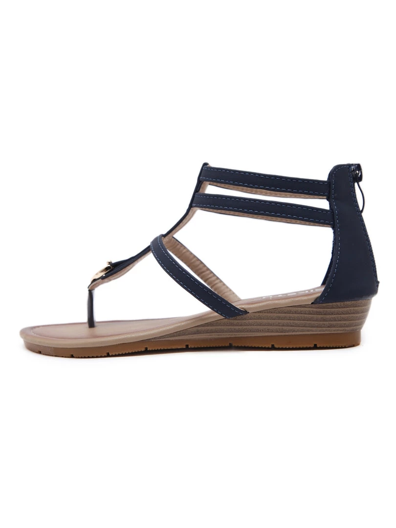 Slim straps wrap your feet with secure style, and a modest wedge elevates your ensemble.