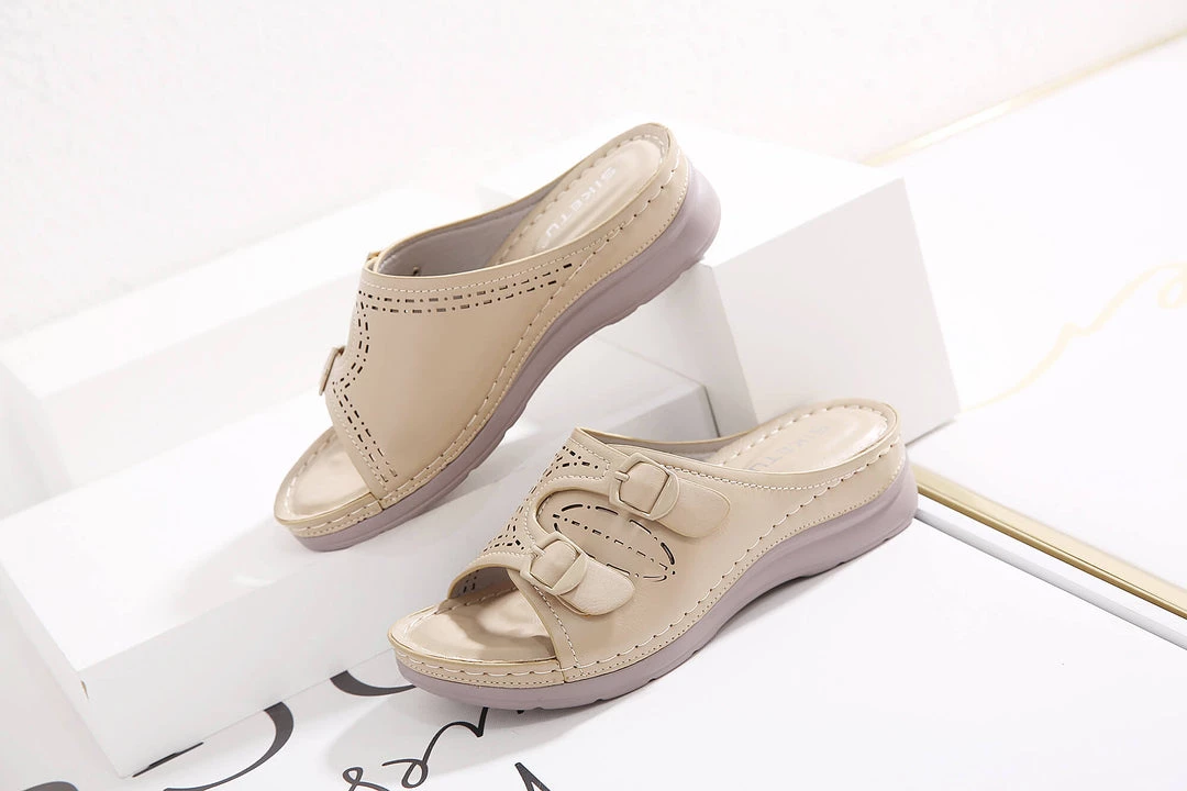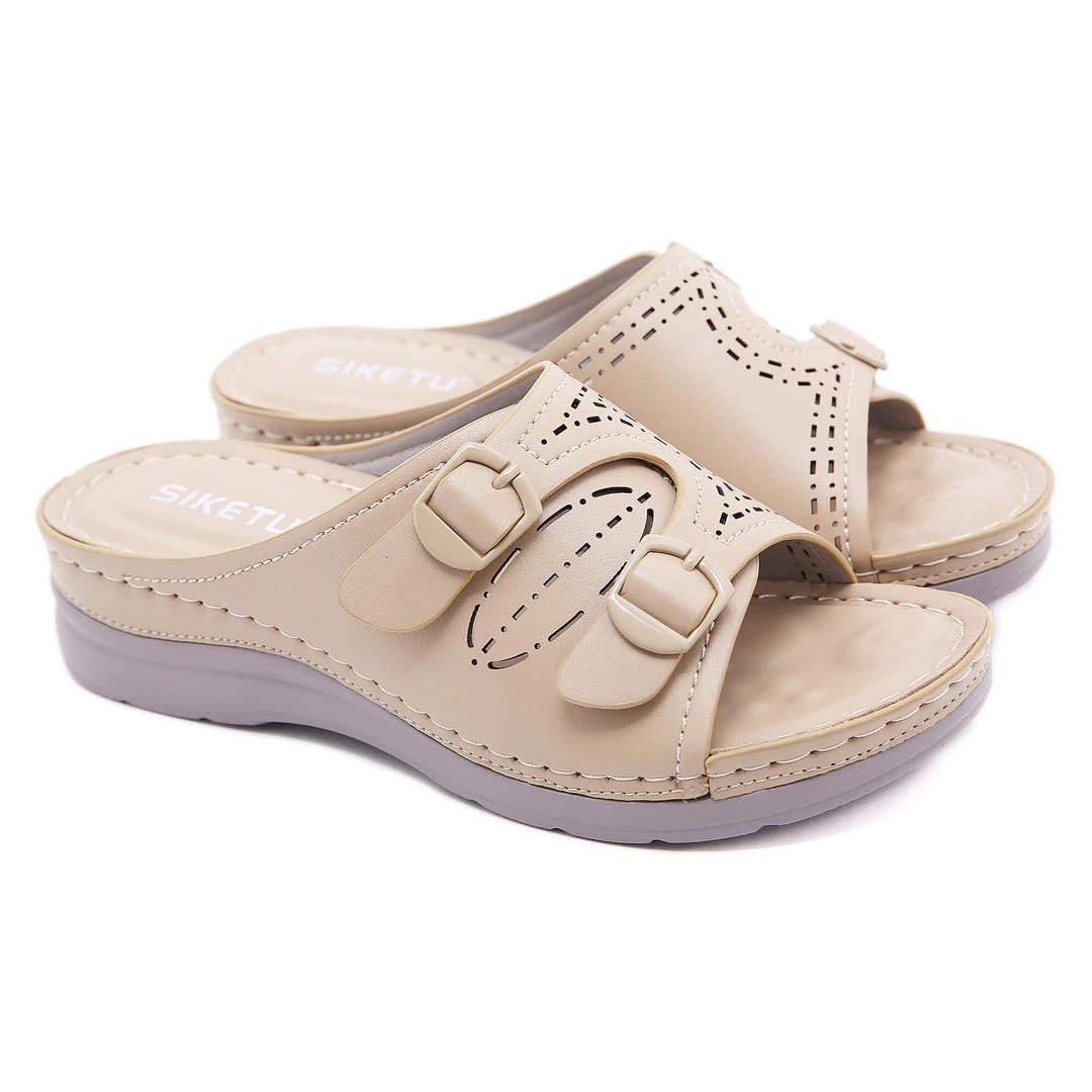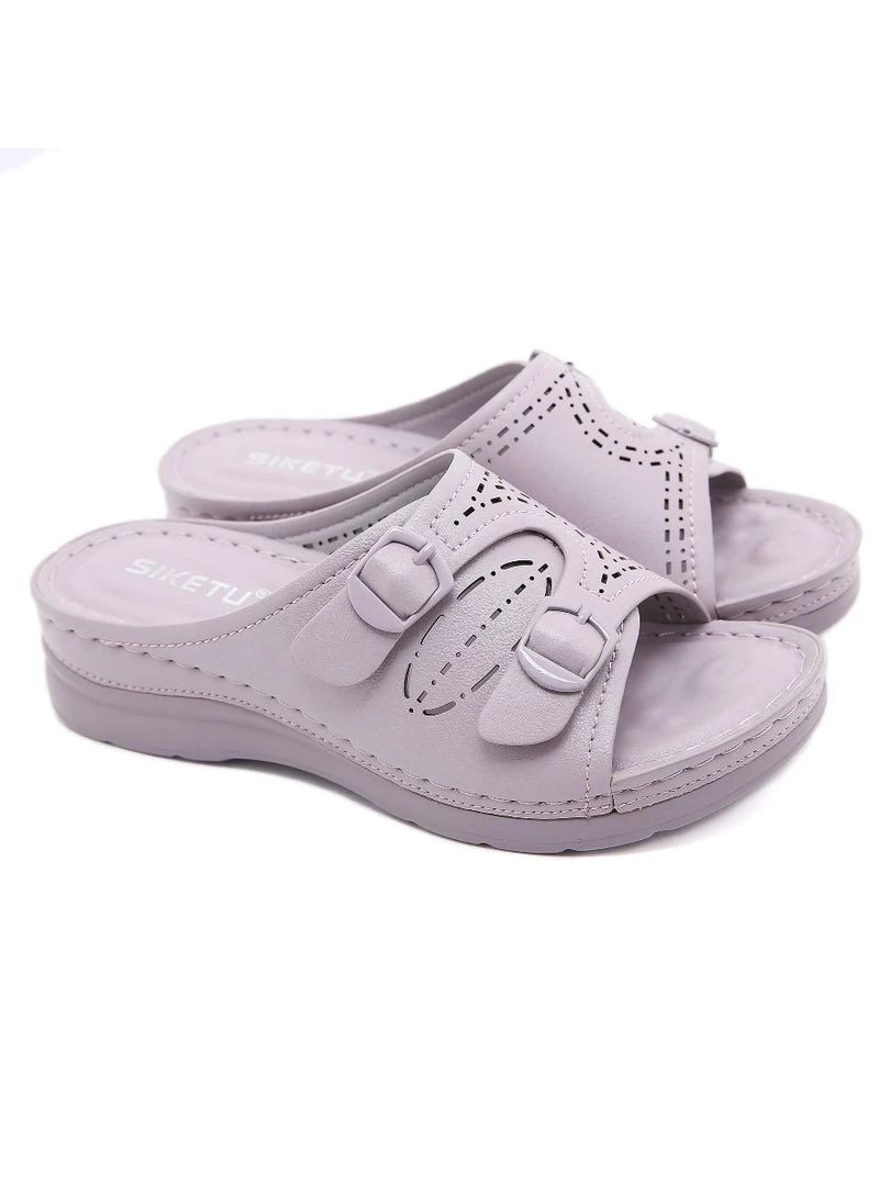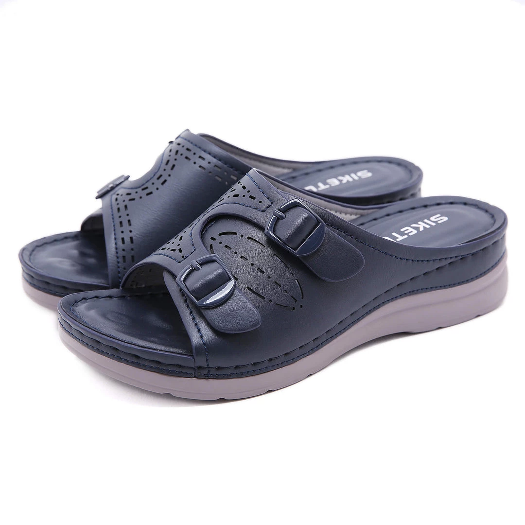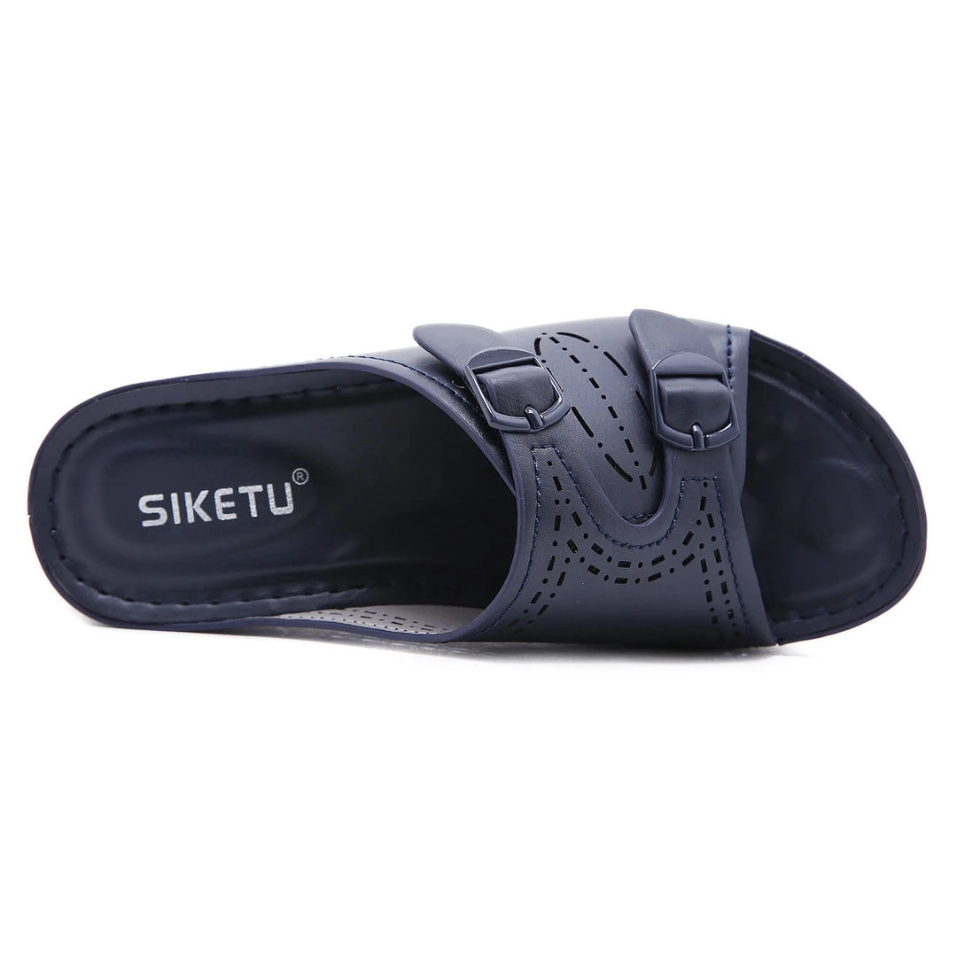 Take your sunny-day strides in style with this pair of double strap sandals and mule style flaunting geometric perforations with adjustable buckles offer best fit.