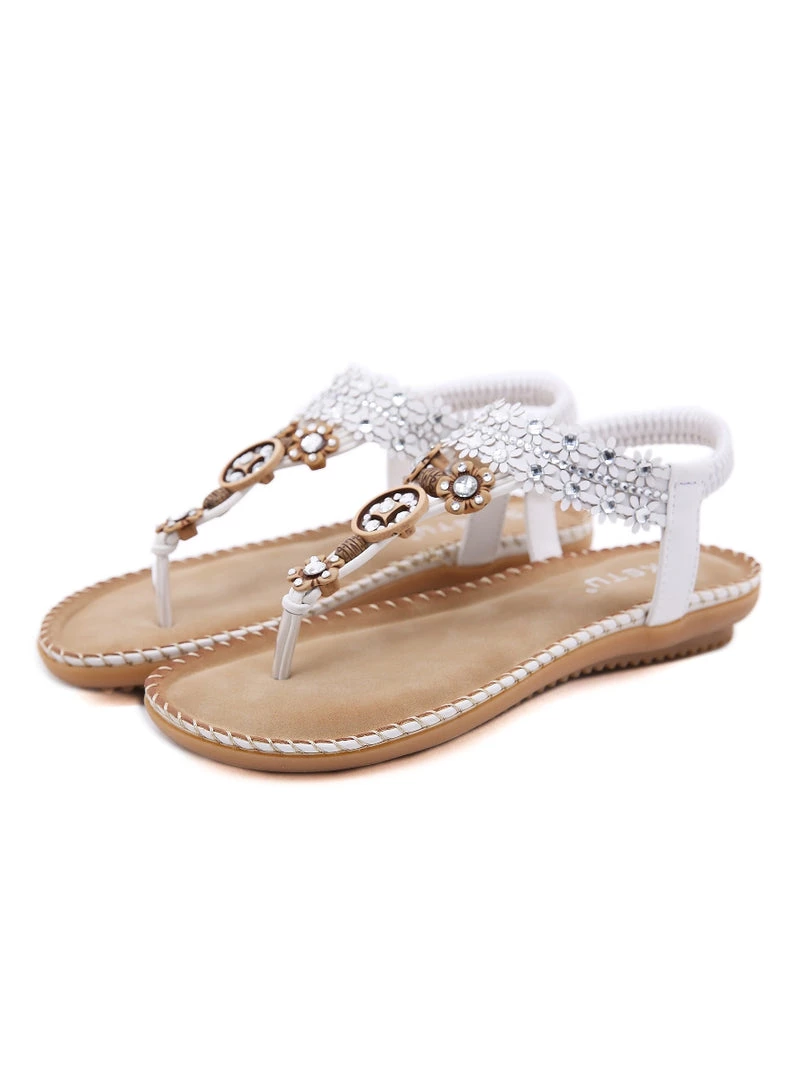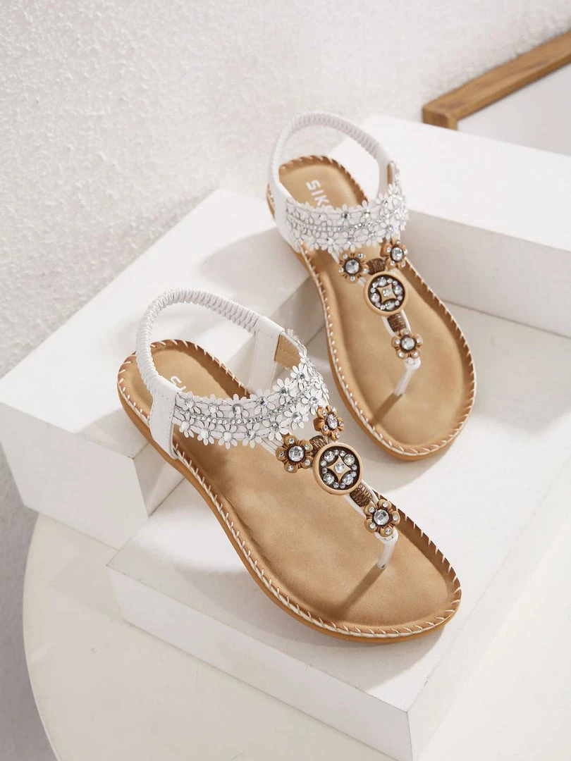 Finish ensembles with eye-catching detail thanks to the rhinestone embellished of these comfortable sandals. An anti-skid sole adds ground-gripping traction to her steps.
