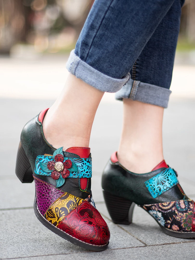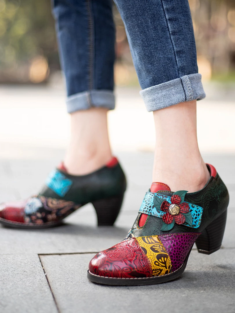 Designed to be a work of art that you can wear, these durable leather boots feature an intricate floral design in vibrant hues.
