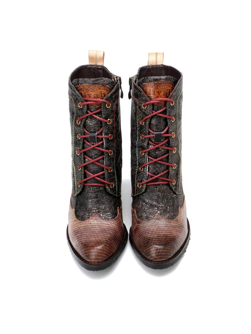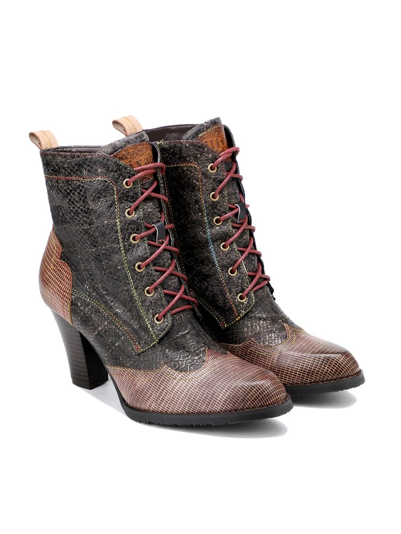 Style your simple, casual look with these can’t-miss leather boots designed with a bright purple toe and an intricate floral print.
