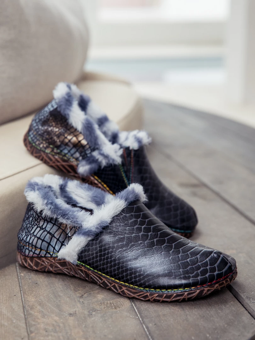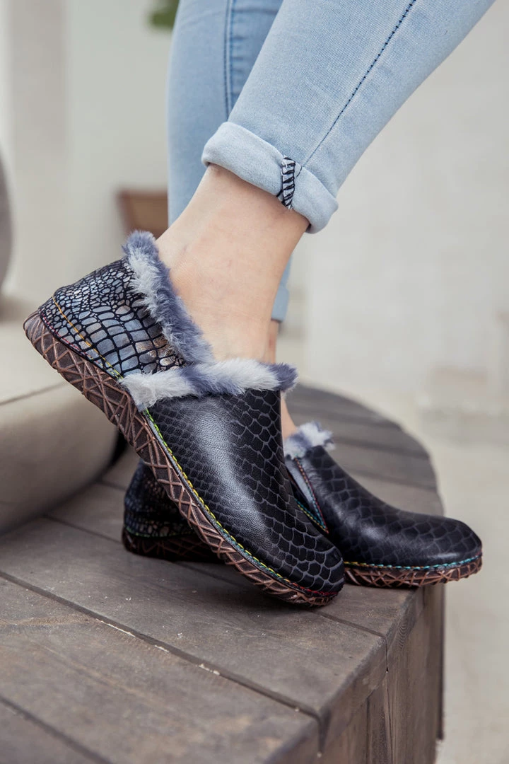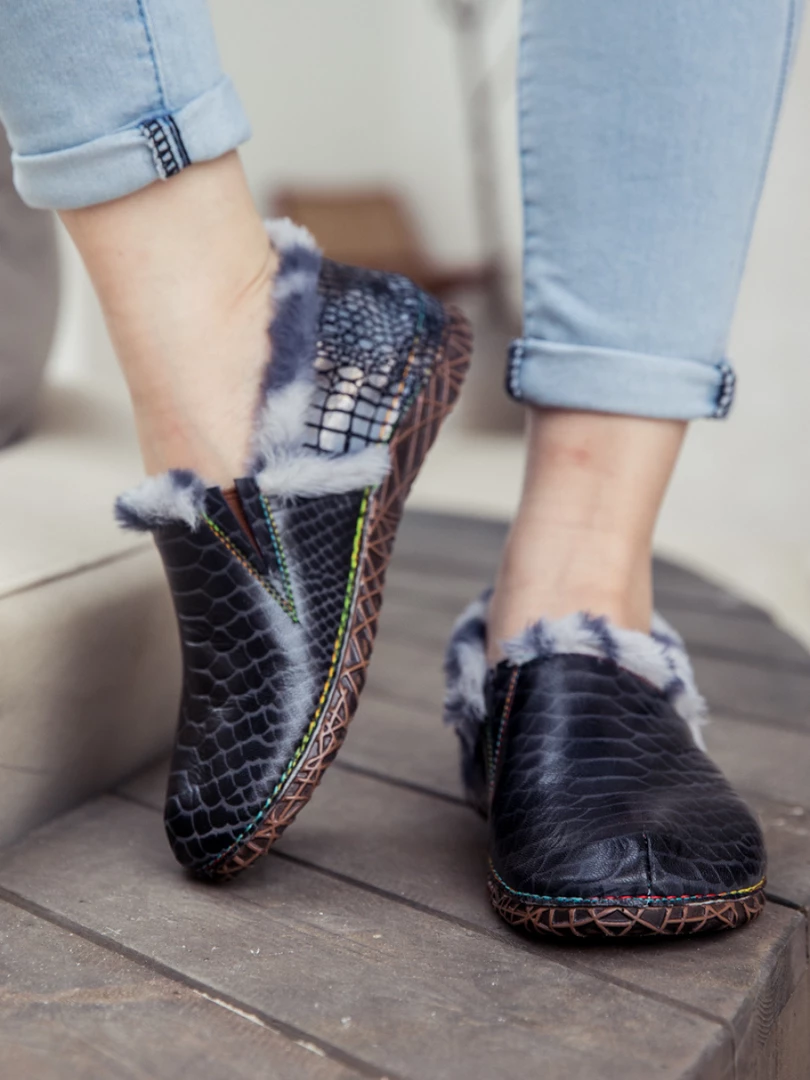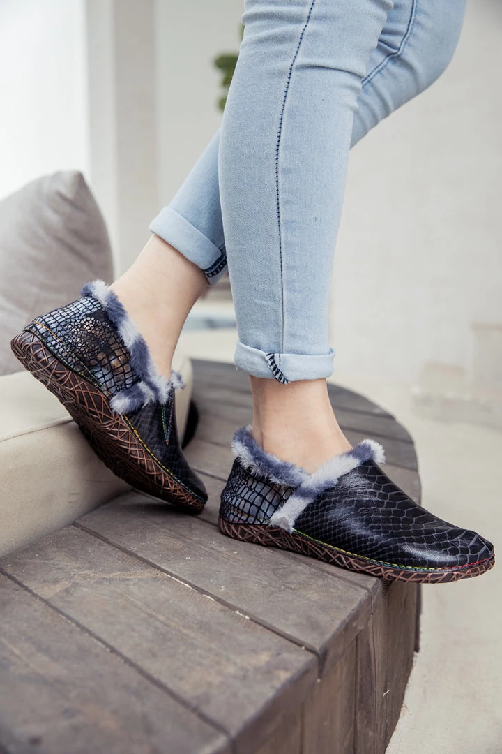 Give your casual and laundry strides a stylish look with this leather wool lined slipper loafer showing off a fish scales print and sequins back heel design.