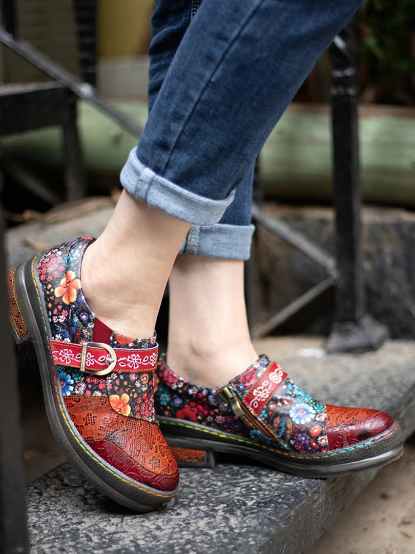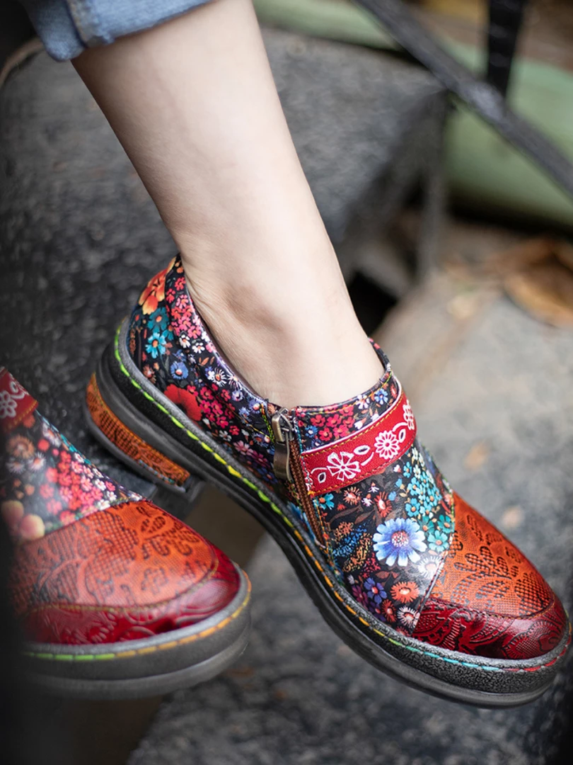 Add a sweet finish to your ensembles by slipping into these vintage-inspired sneaker crafted with eye-catching blossom print and an abstract rainbow color-print .