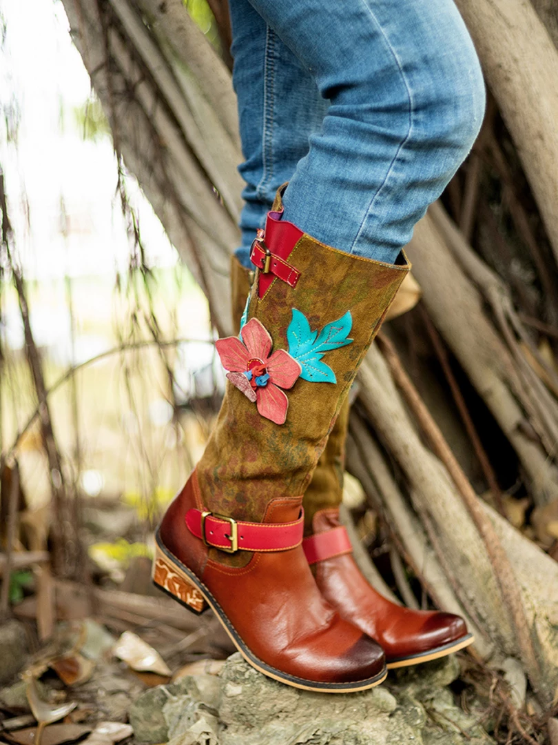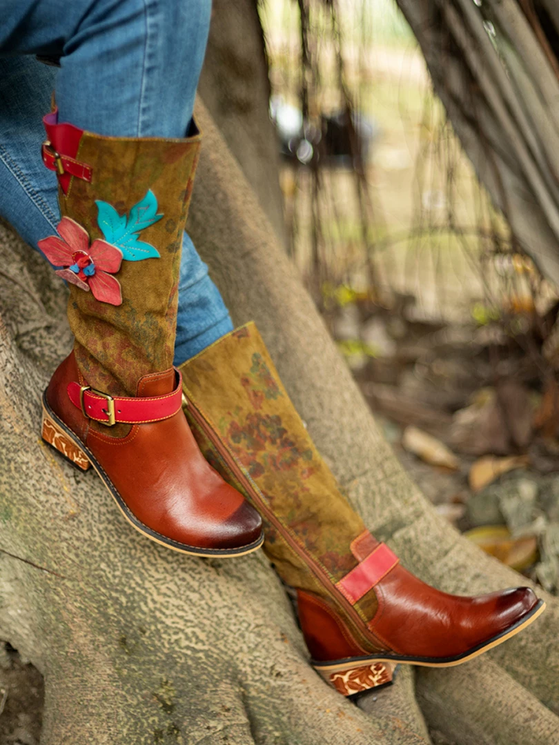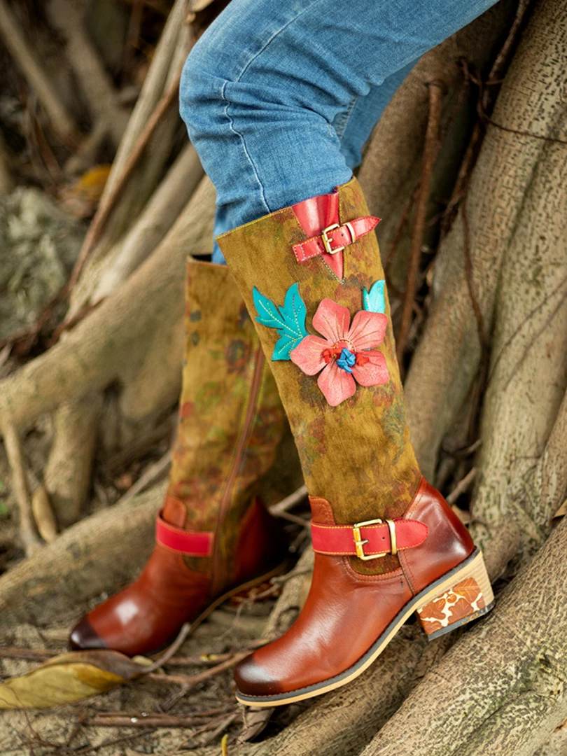 With a stunning applique design and a cow leather construction, these boots take your footwear game to the next level and ensure a bold look.