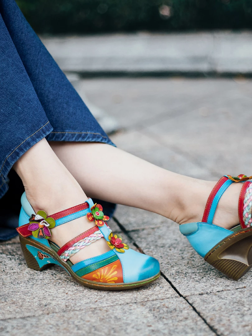 Bring out a little more of your rock ‘n’ roll edge with this applique craft, braided detailed genuine leather sandal. Stand tall with a modern, look-lofting heel.
