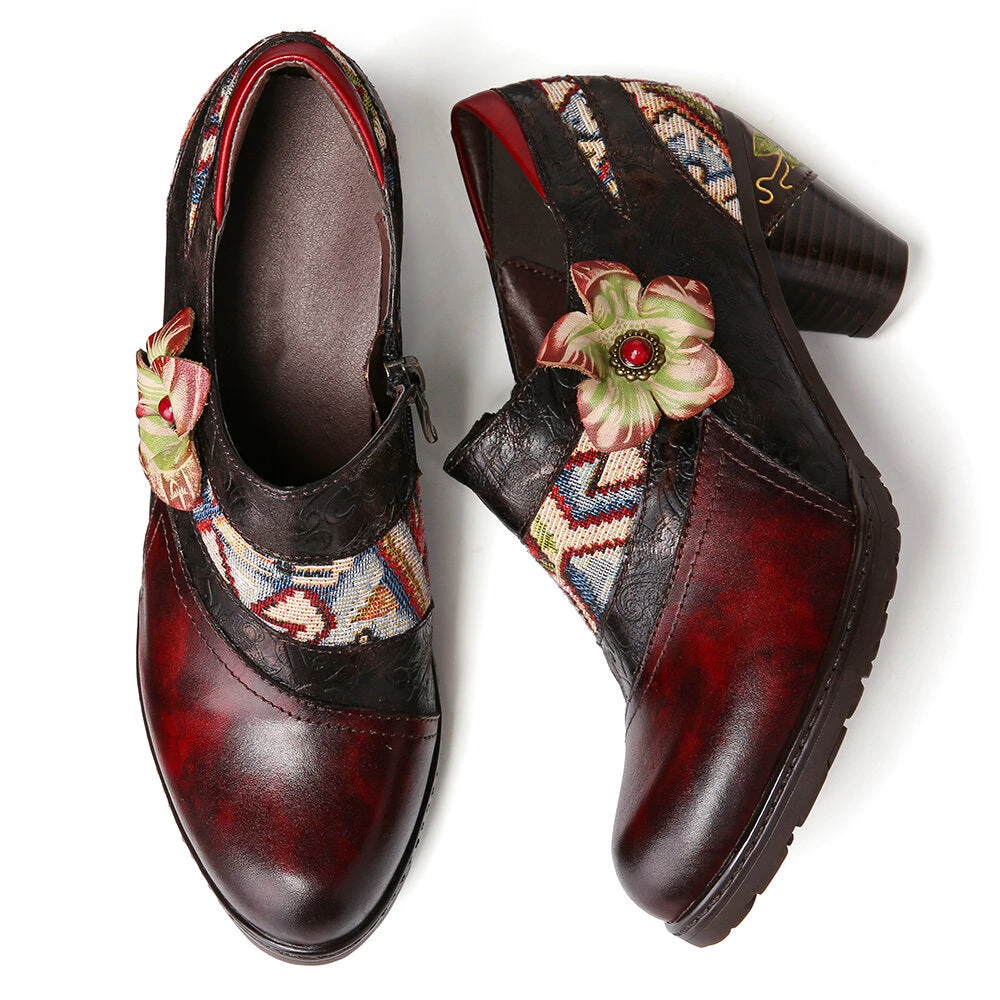 Designed to be a work of art that you can wear, these durable leather boots feature an intricate floral design in vibrant hues.
