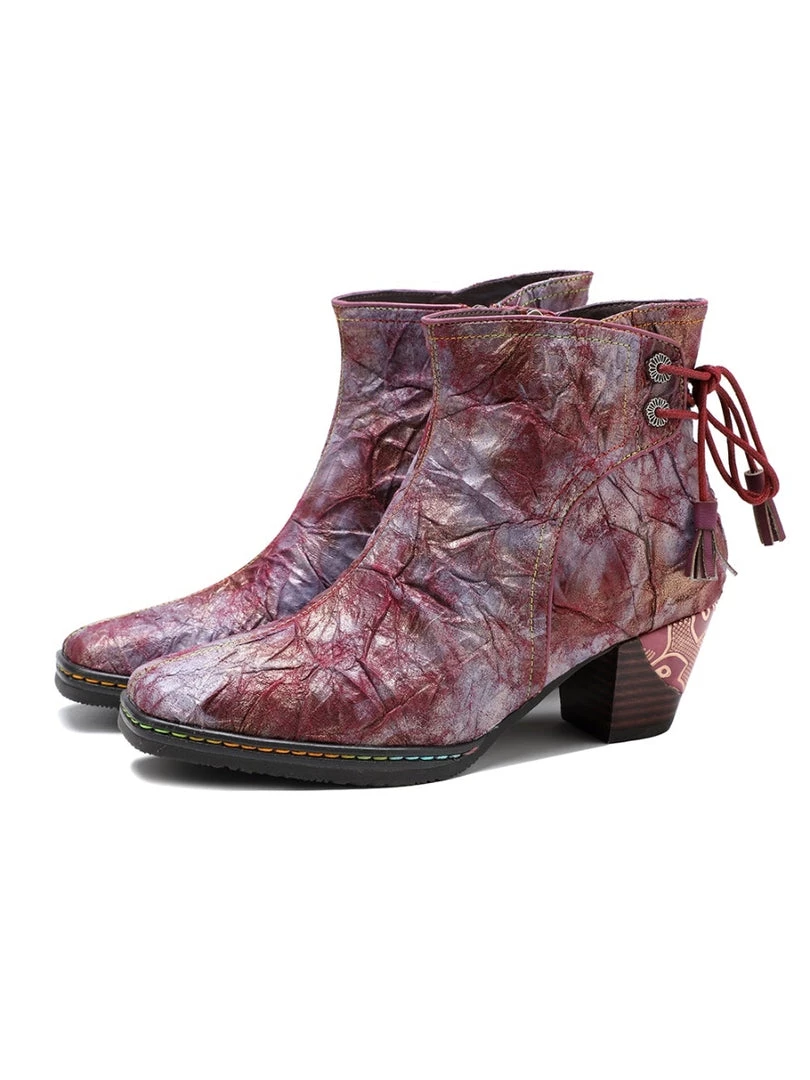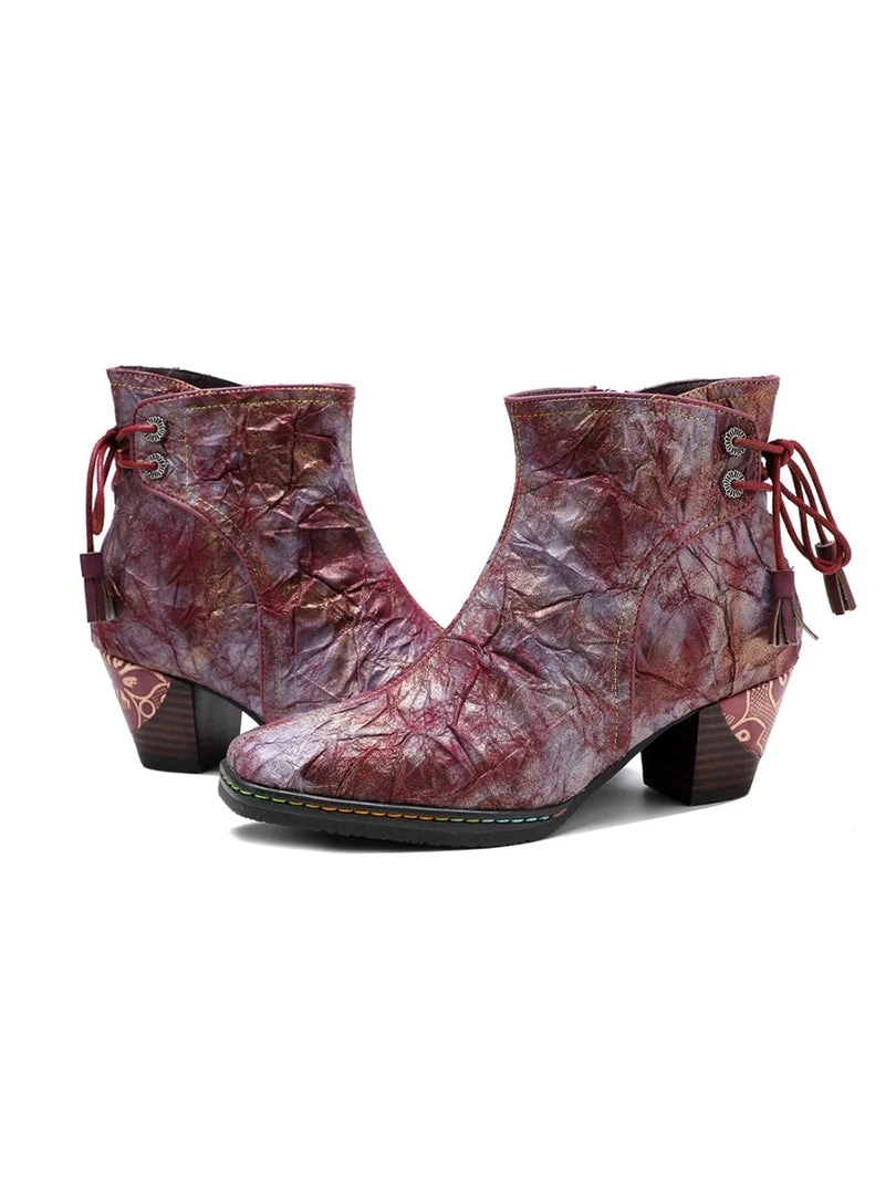 Invite a touch of Western-inspired flair into your look with this statement pair of antique booties complete with a distress fabric make .