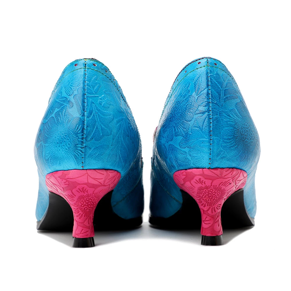 Give casual strides a stylish boost with this leather pump showing off an assortment of lively hues and contrasting patterns.