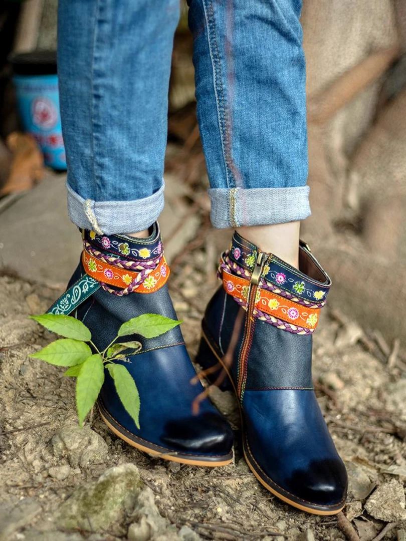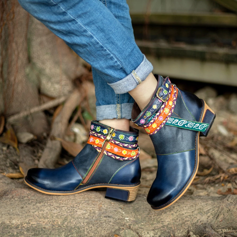 These colorful ankle boots feature playful texturing along the upper and bold buckles around the top for added oomph.