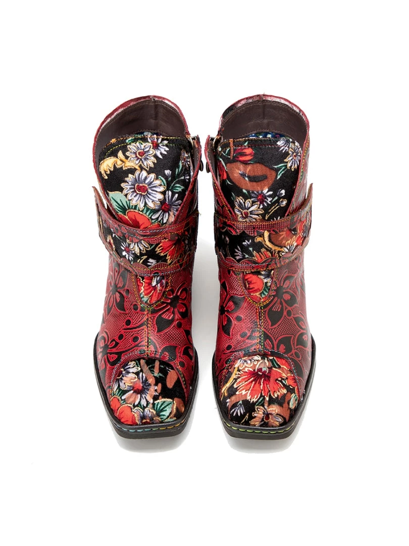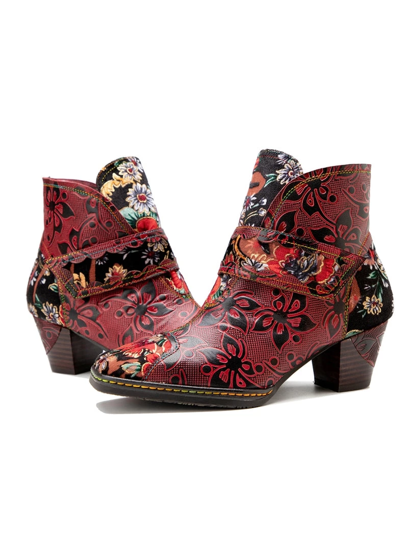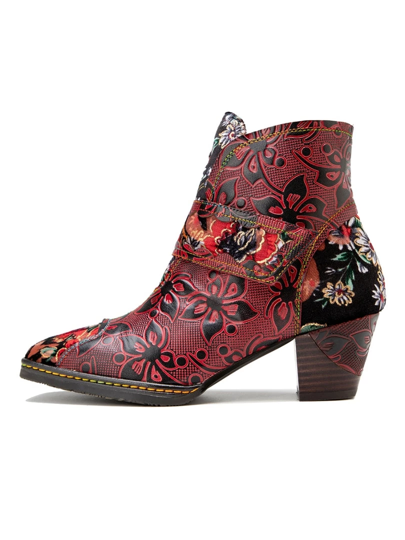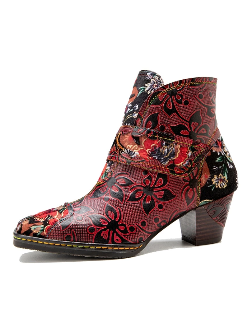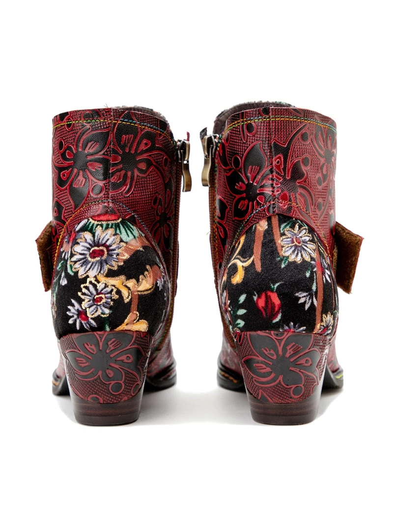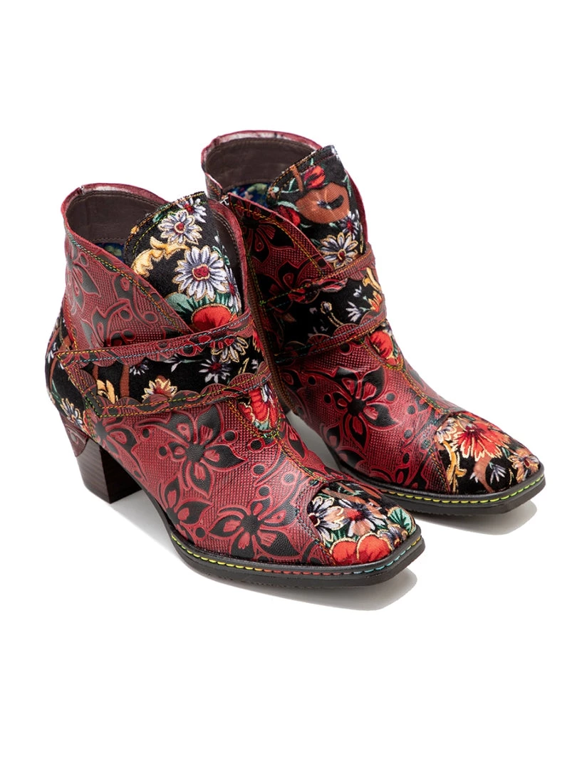 These colorful ankle boots feature playful orchid along the upper and bold buckles around the top for added oomph.