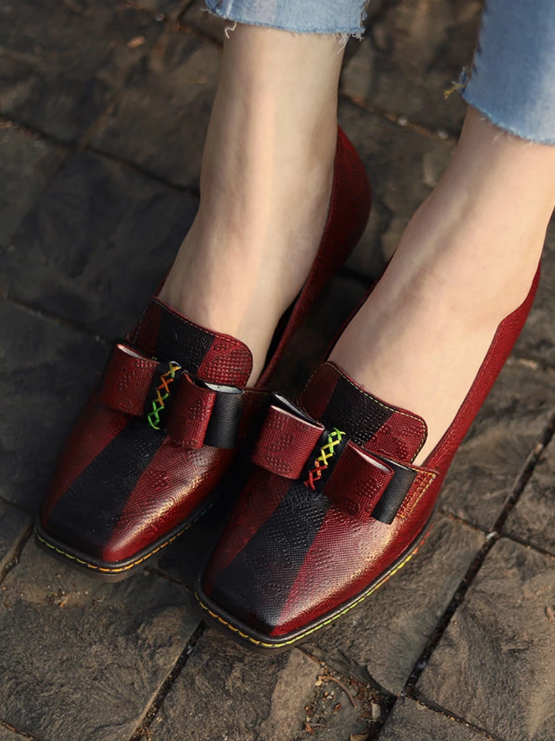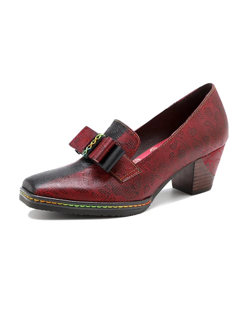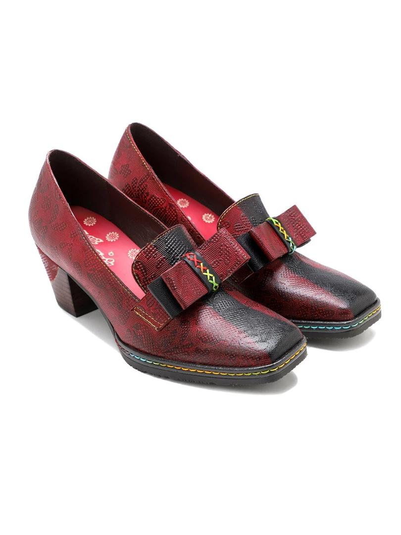 Add some avant-garde sophistication to your footwear rotation with the embroidered heel and rainbow stitch design of this elegant genuine leather pump.