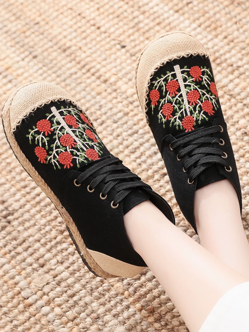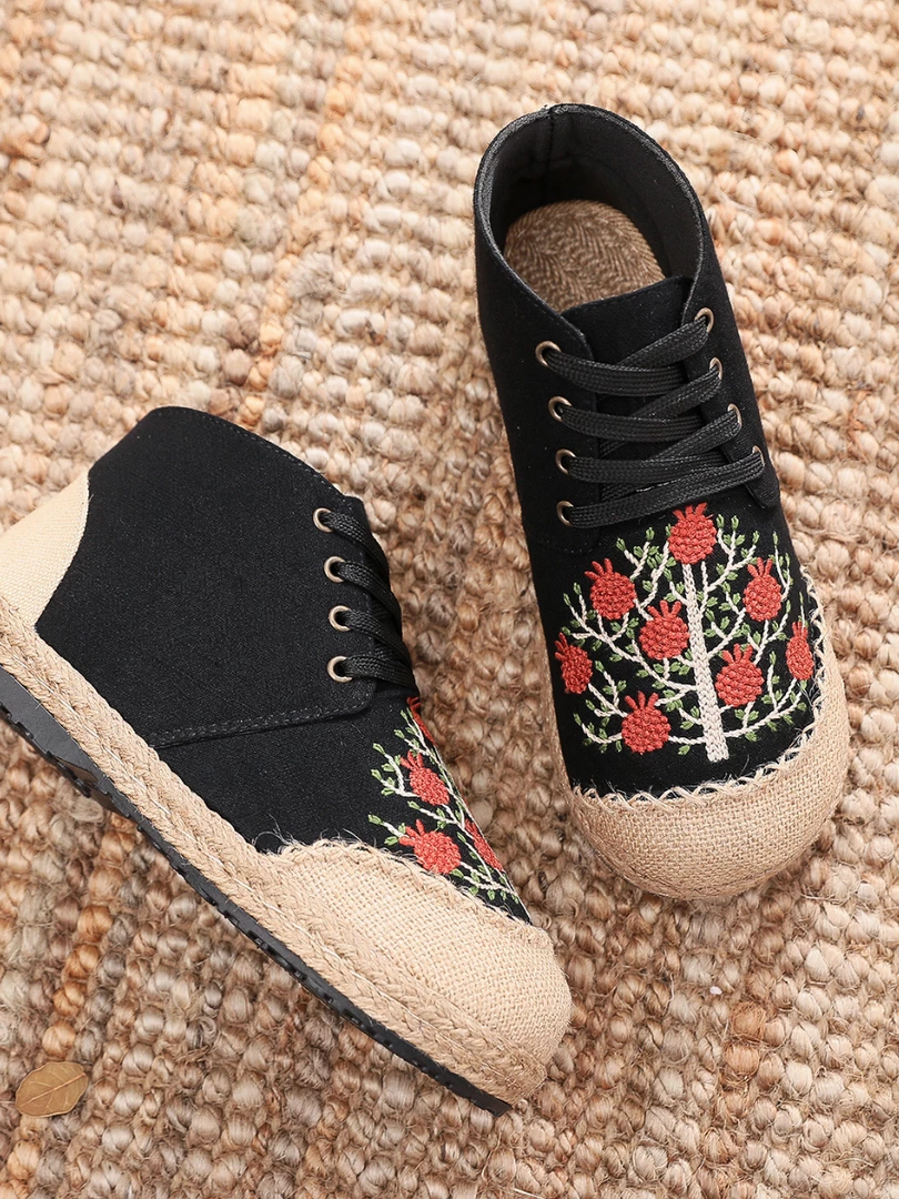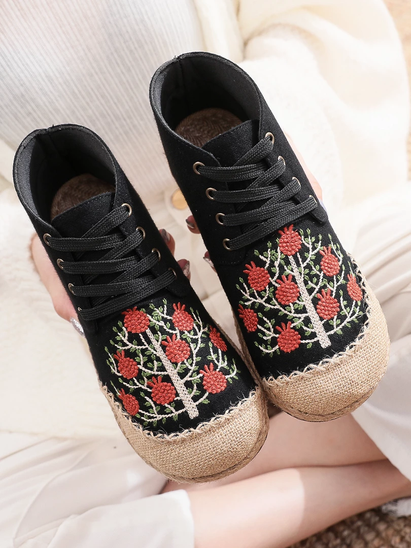 Kick your shoe collection up an extraordinary notch with these embroidered berry tree print sneakers.