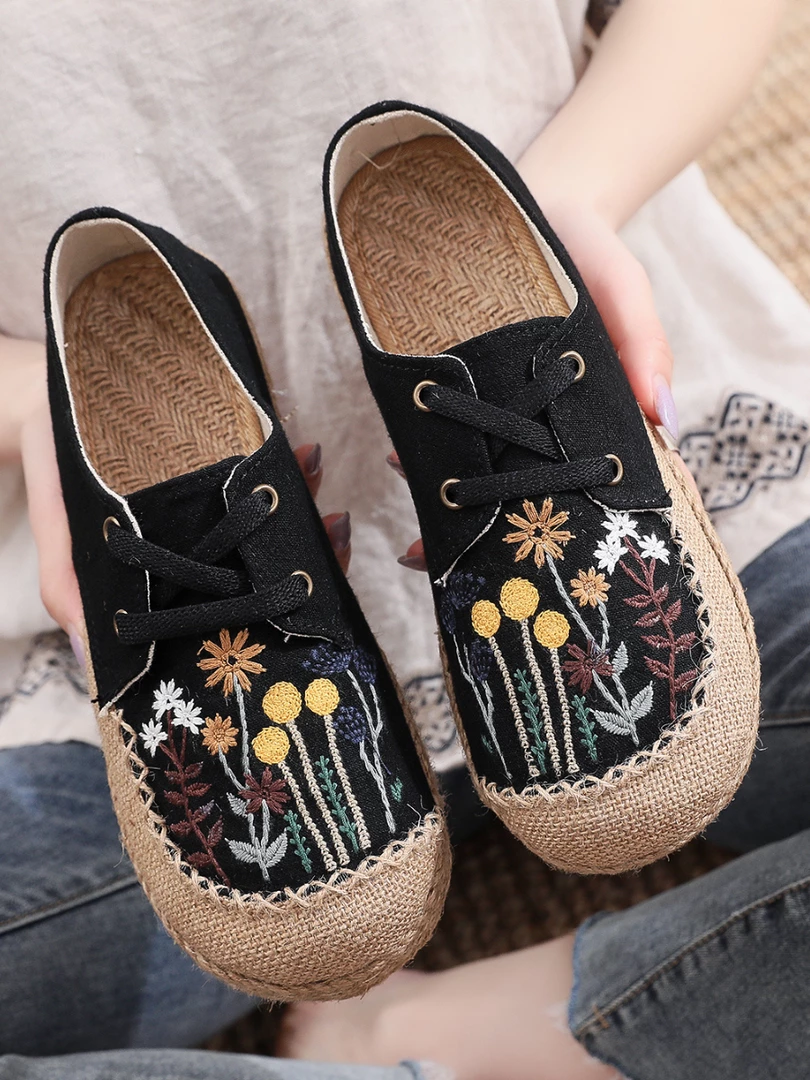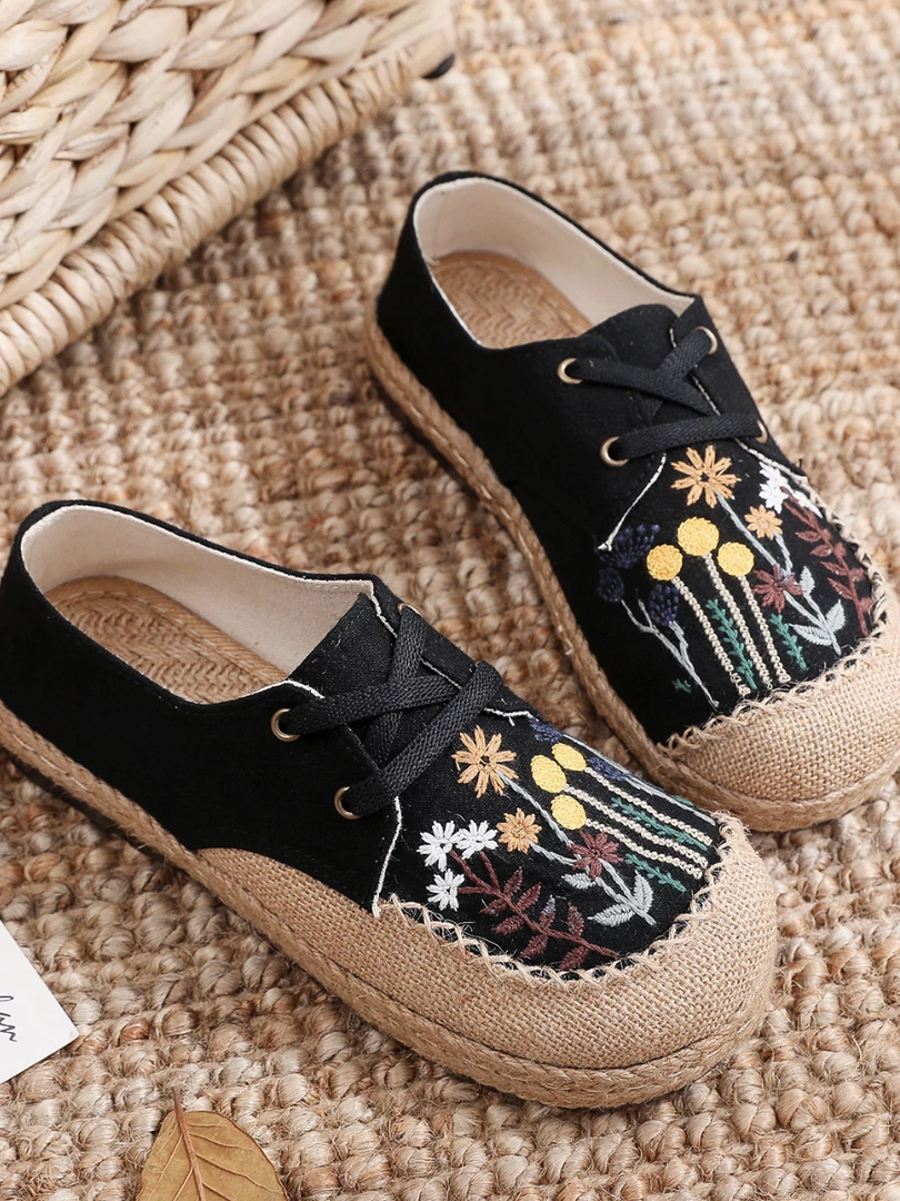 Upgrade your casual footwear collection this spring with these embroidered garden theme boat shoes boasting a retro aesthetic. These loafer bring lively style to your casual strides.