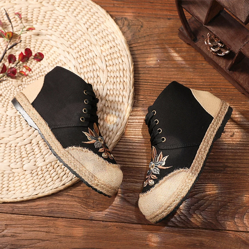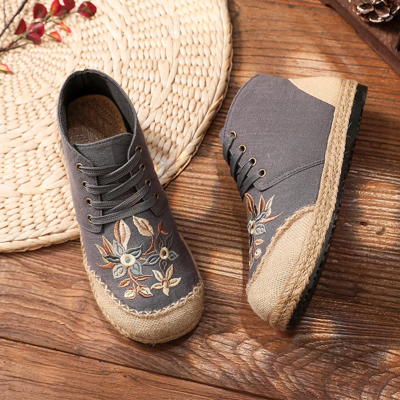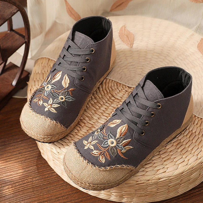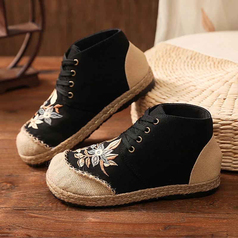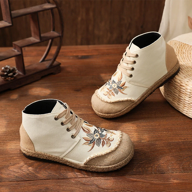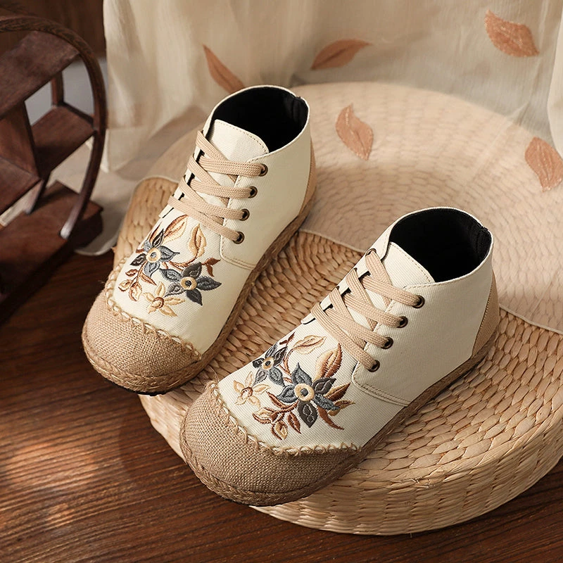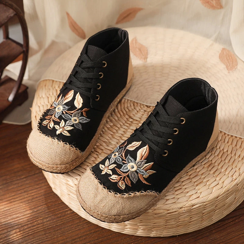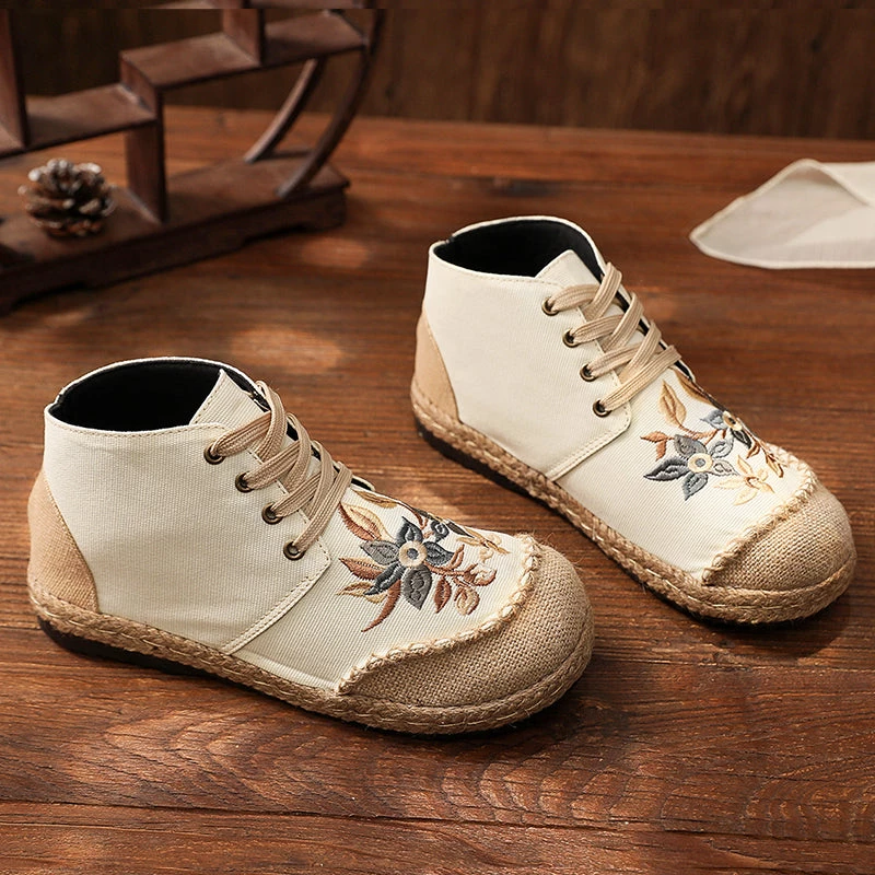 Upgrade your casual footwear collection with these embroidered art flower sneakers boasting a retro aesthetic. strangers on the street.