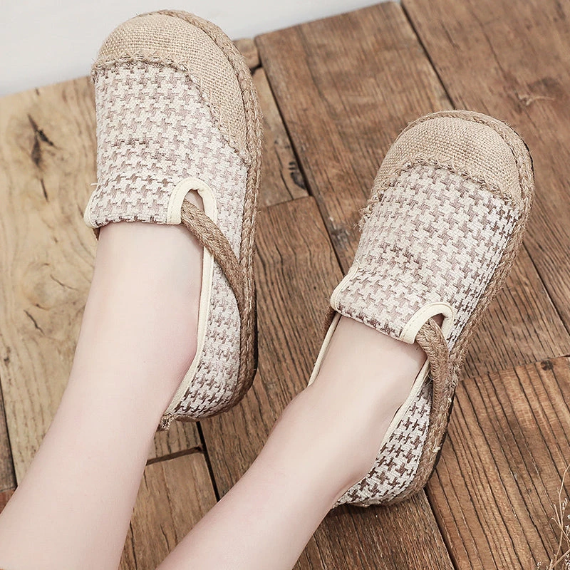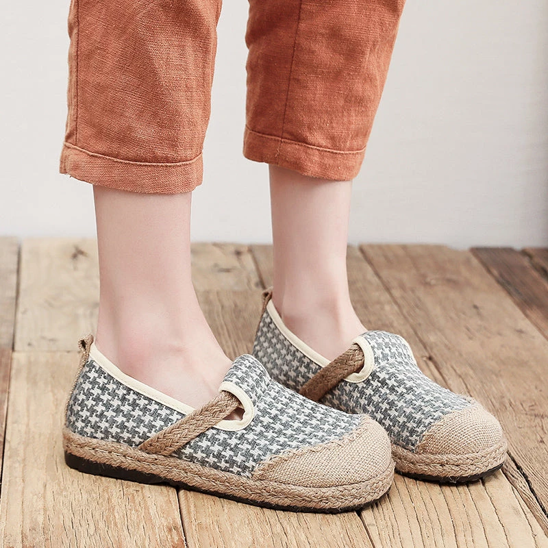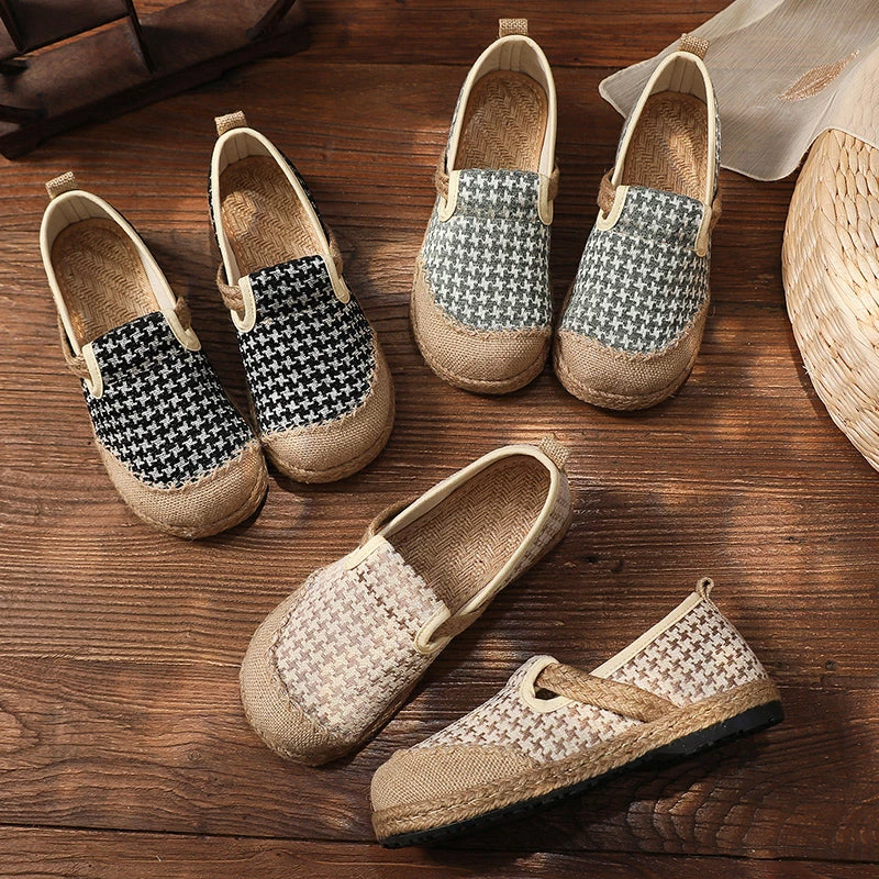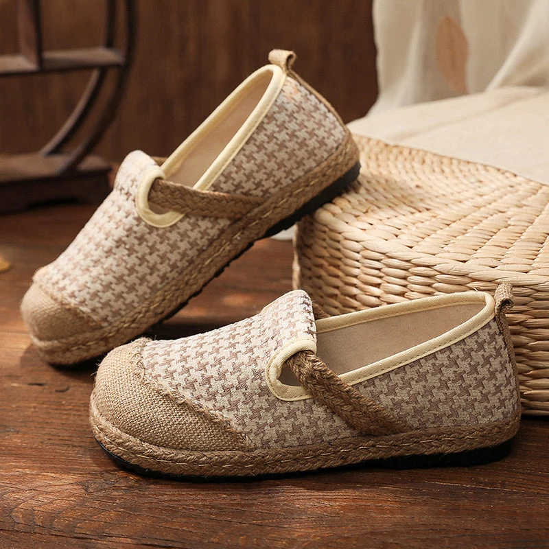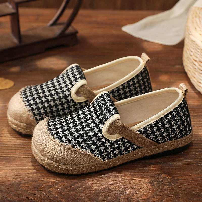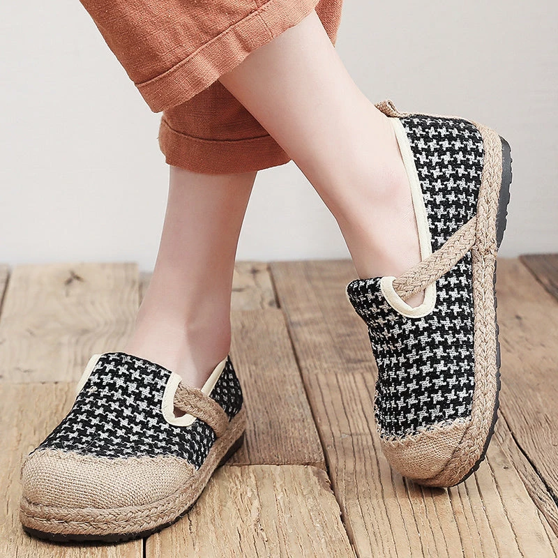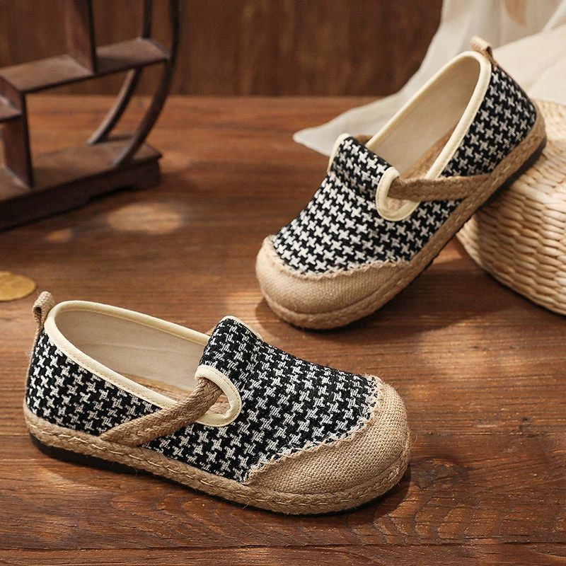 This slip-on espadrille boasts houndstooth print and a cross-strap for comfortably stylish strides.