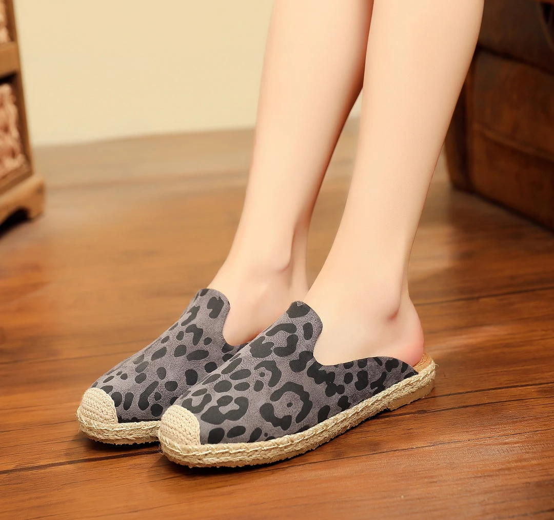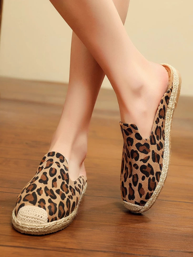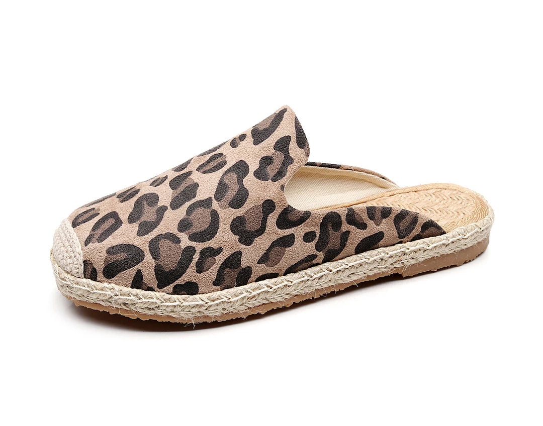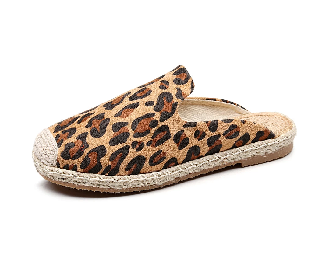 Slip into the effortless sophistication of this canvas mule that features a leopard-embossed design and a sleek pointed toe.