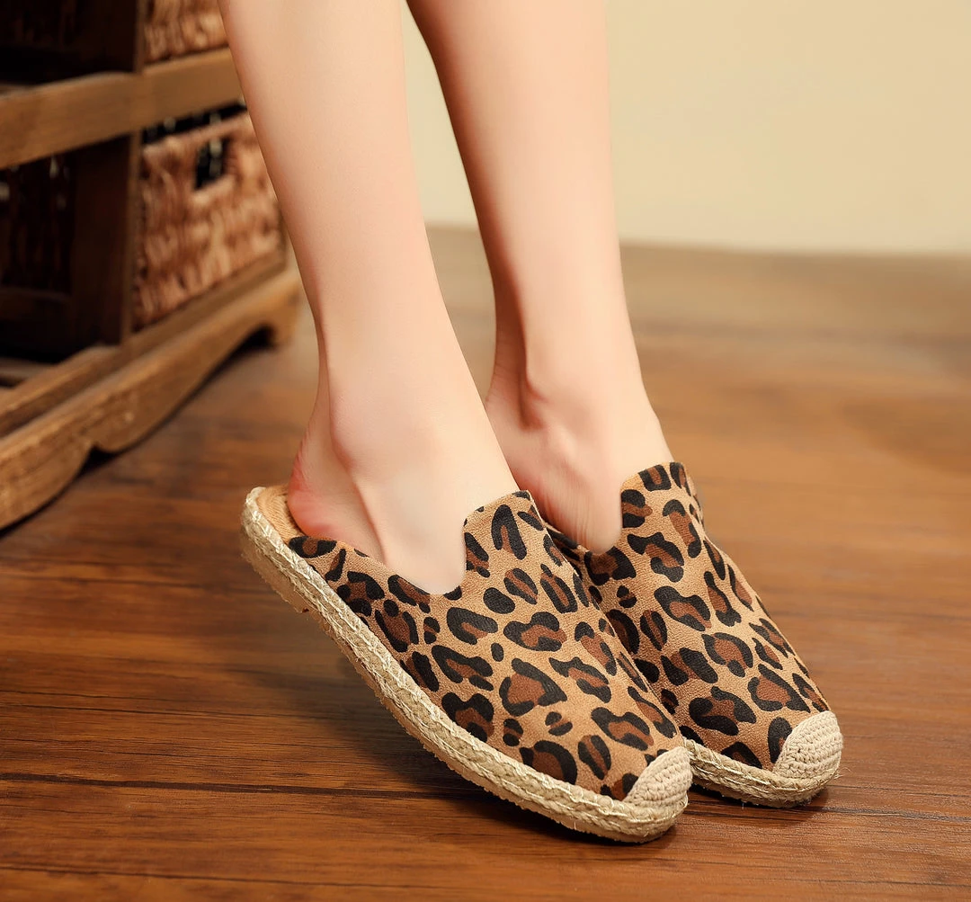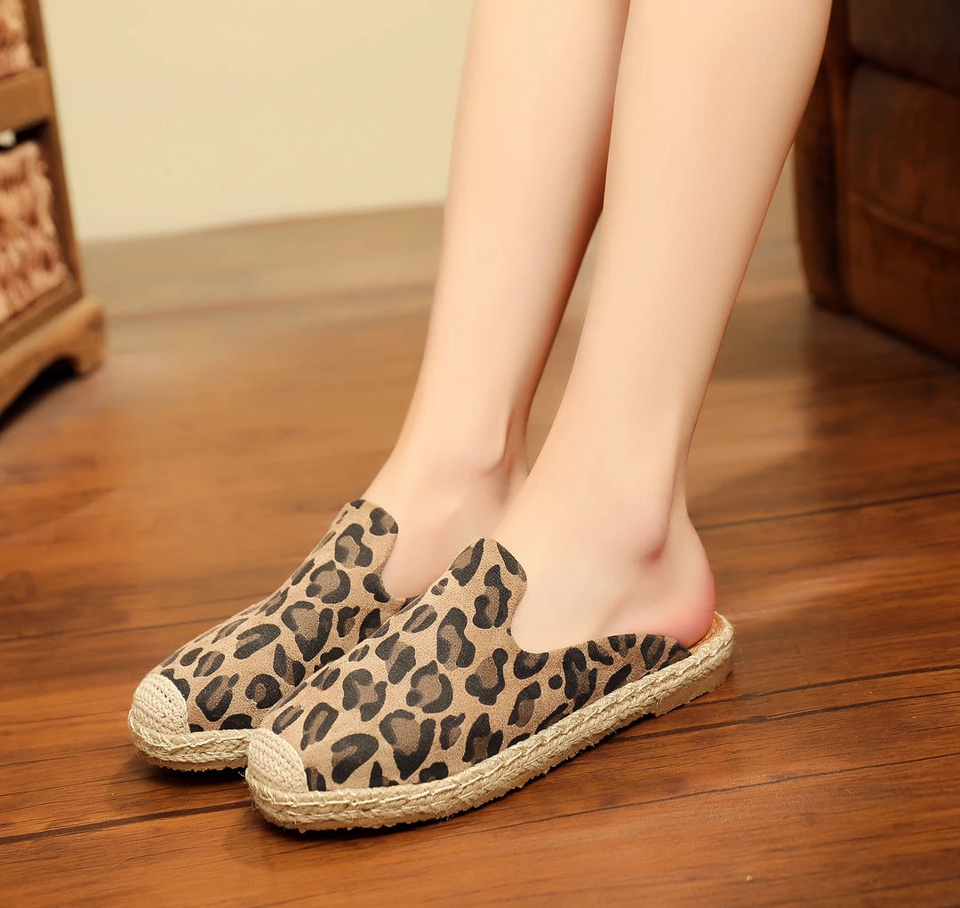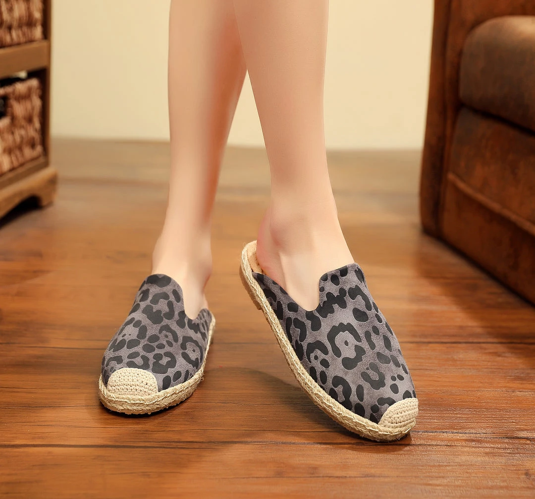 Slip into the effortless sophistication of this canvas mule that features a leopard-embossed design and a sleek pointed toe.
