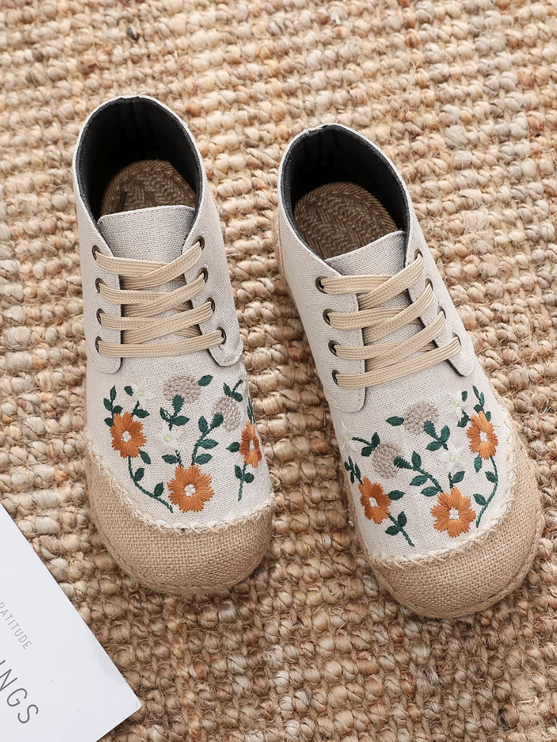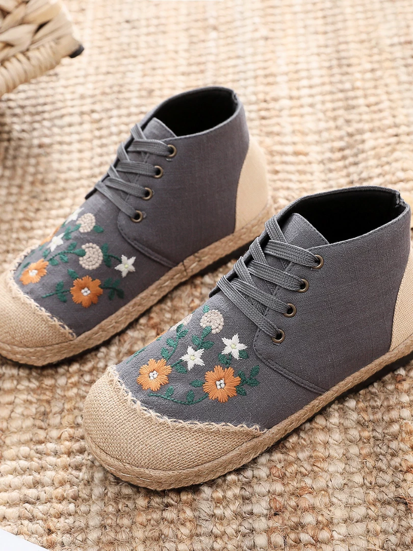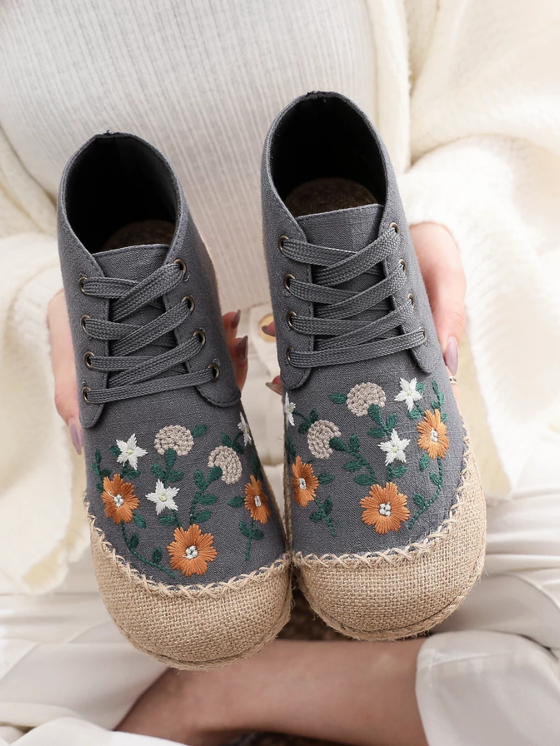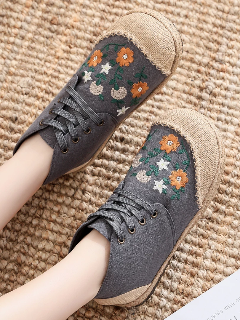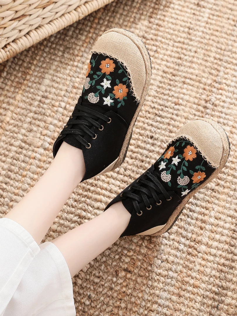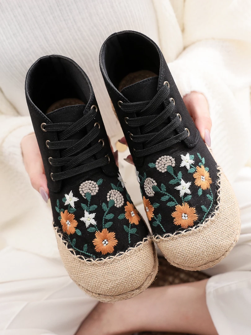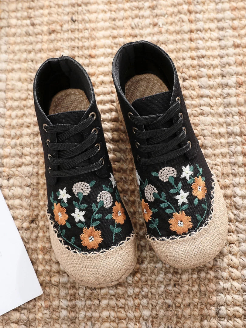 Upgrade your casual footwear collection this fall with these embroidered art flower sneakers boasting a retro aesthetic. strangers on the street.
