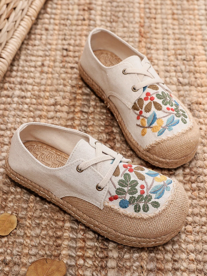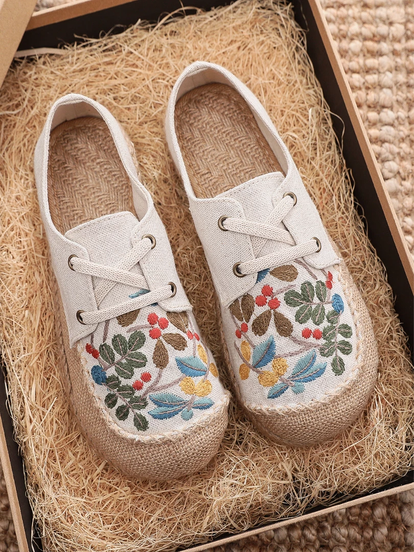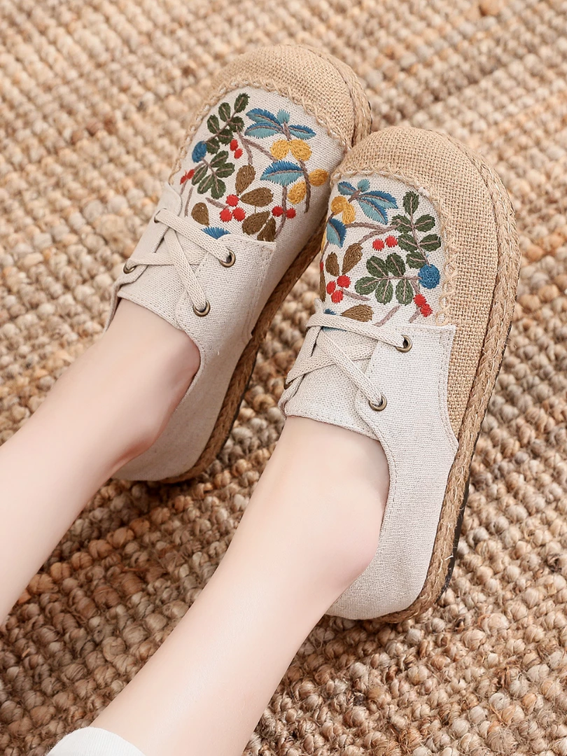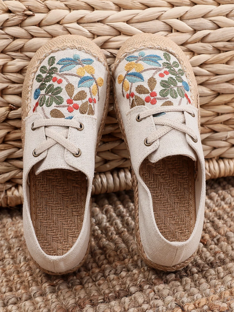 TC New In Shoes Cactus Rose | Playground Embroidered Linen Boat Shoes – Beige