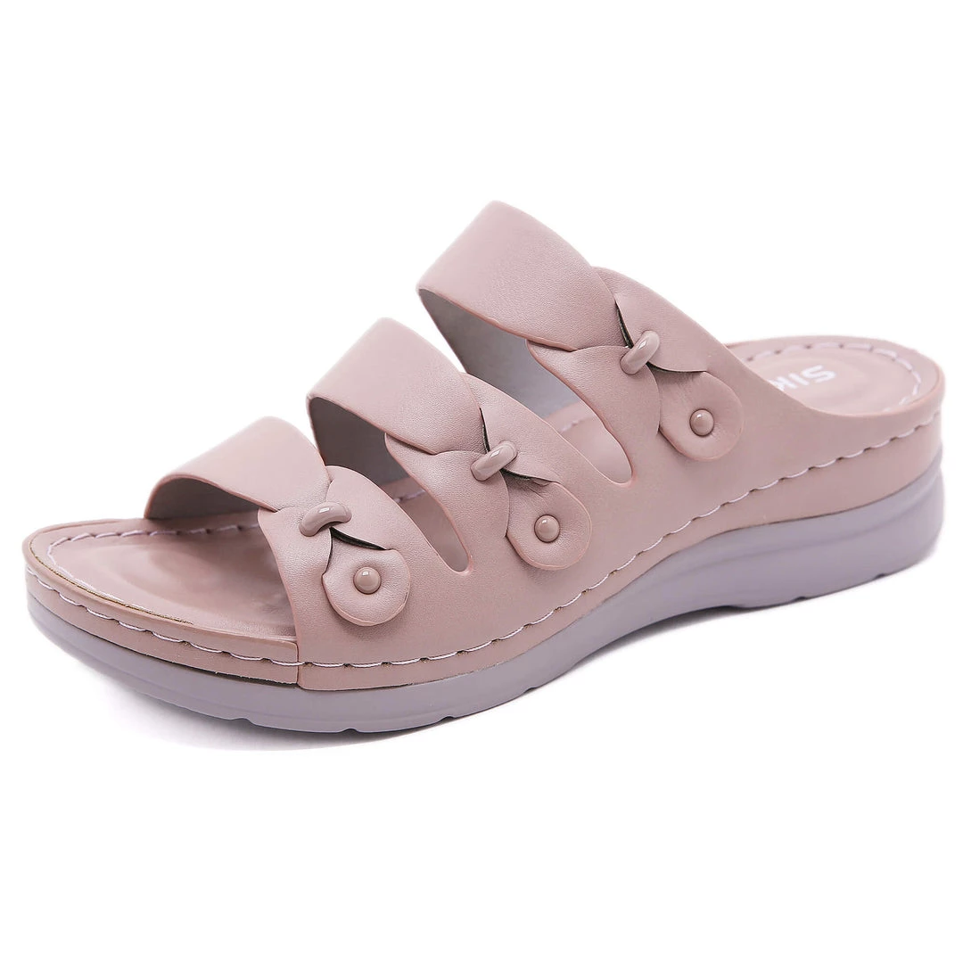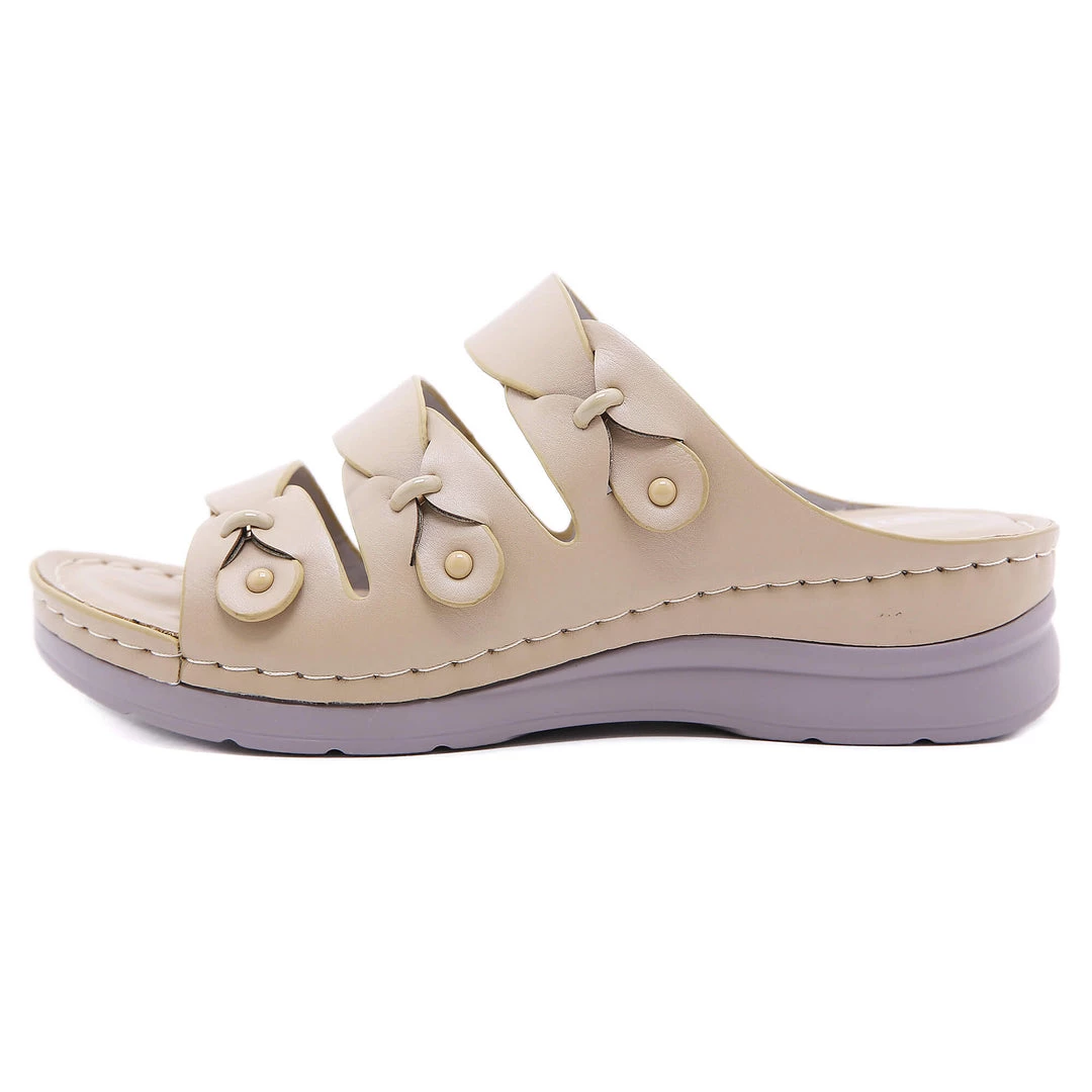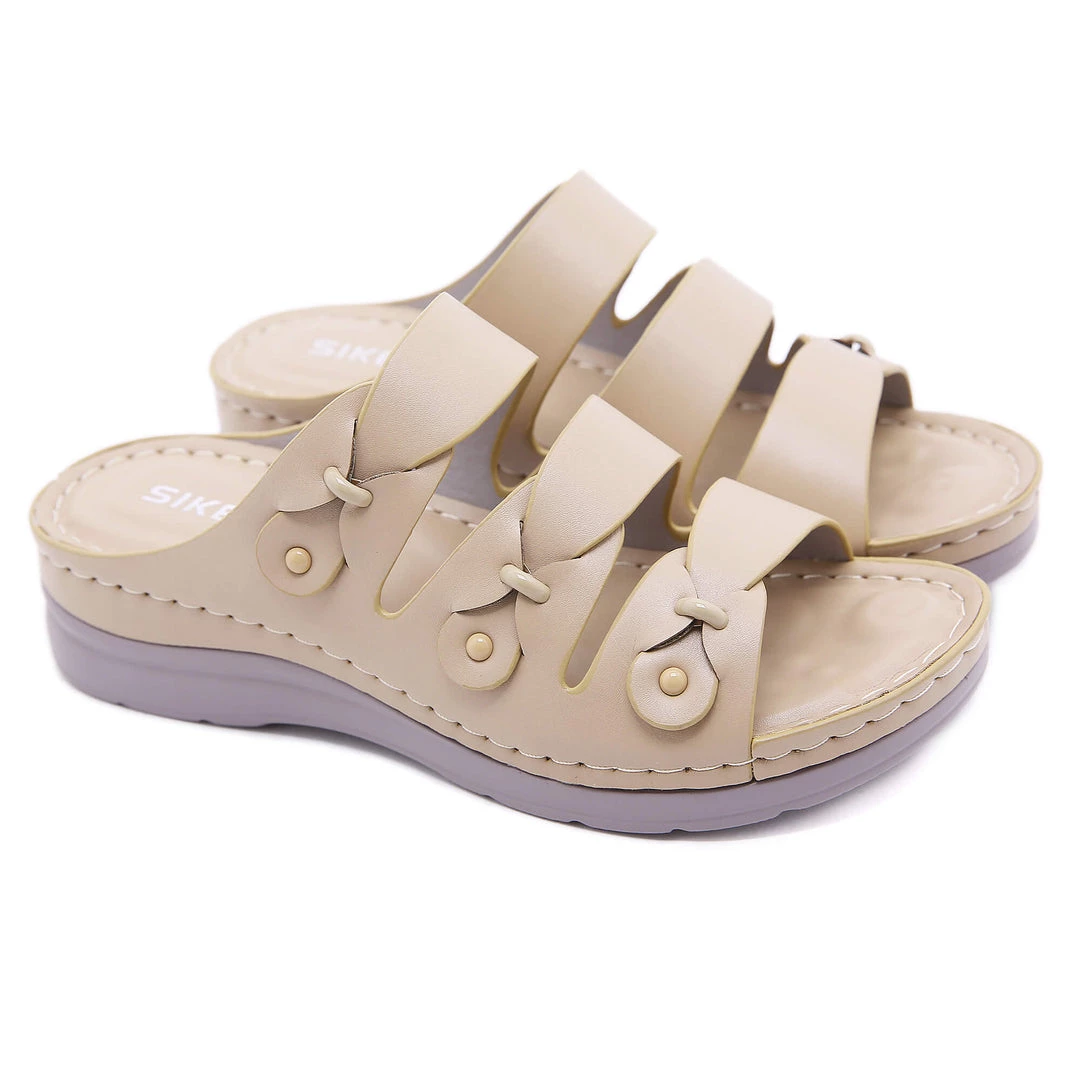 Update your warm-weather wardrobe with these stylish sandals boasting chic ring deco and tri-straps.