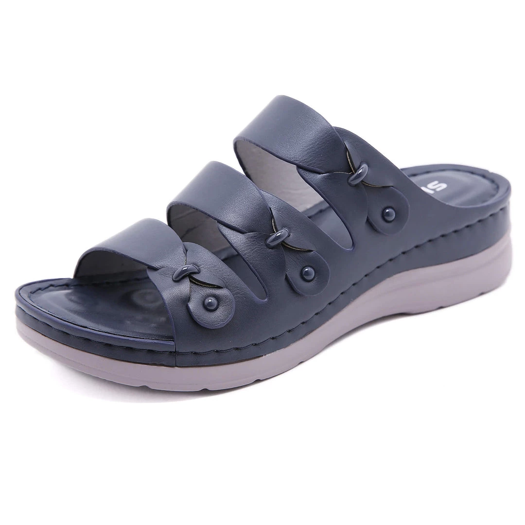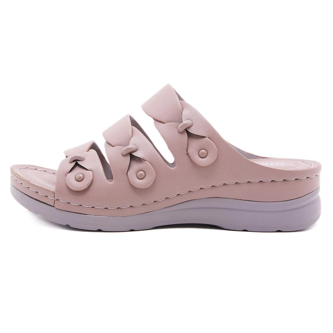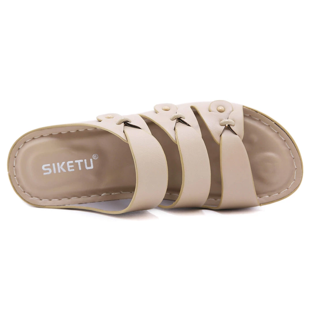Update your warm-weather wardrobe with these stylish sandals boasting chic ring deco and tri-straps.
