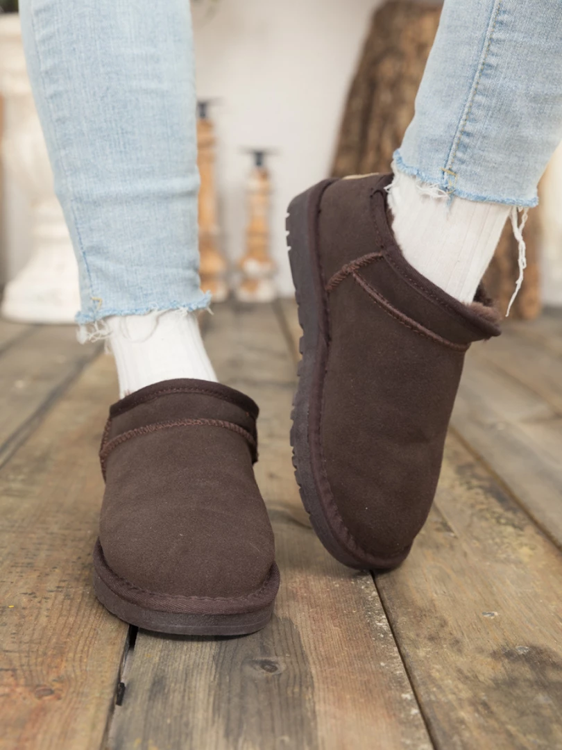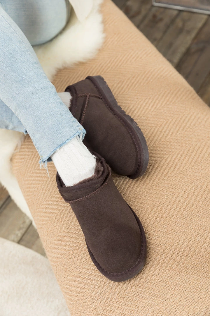 Stay warm in chic, eye-catching style when you slip into these genuine suede boots featuring a plush faux fur-lining and unique low cut.