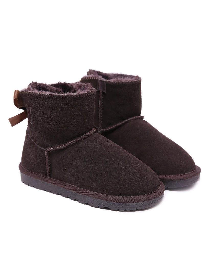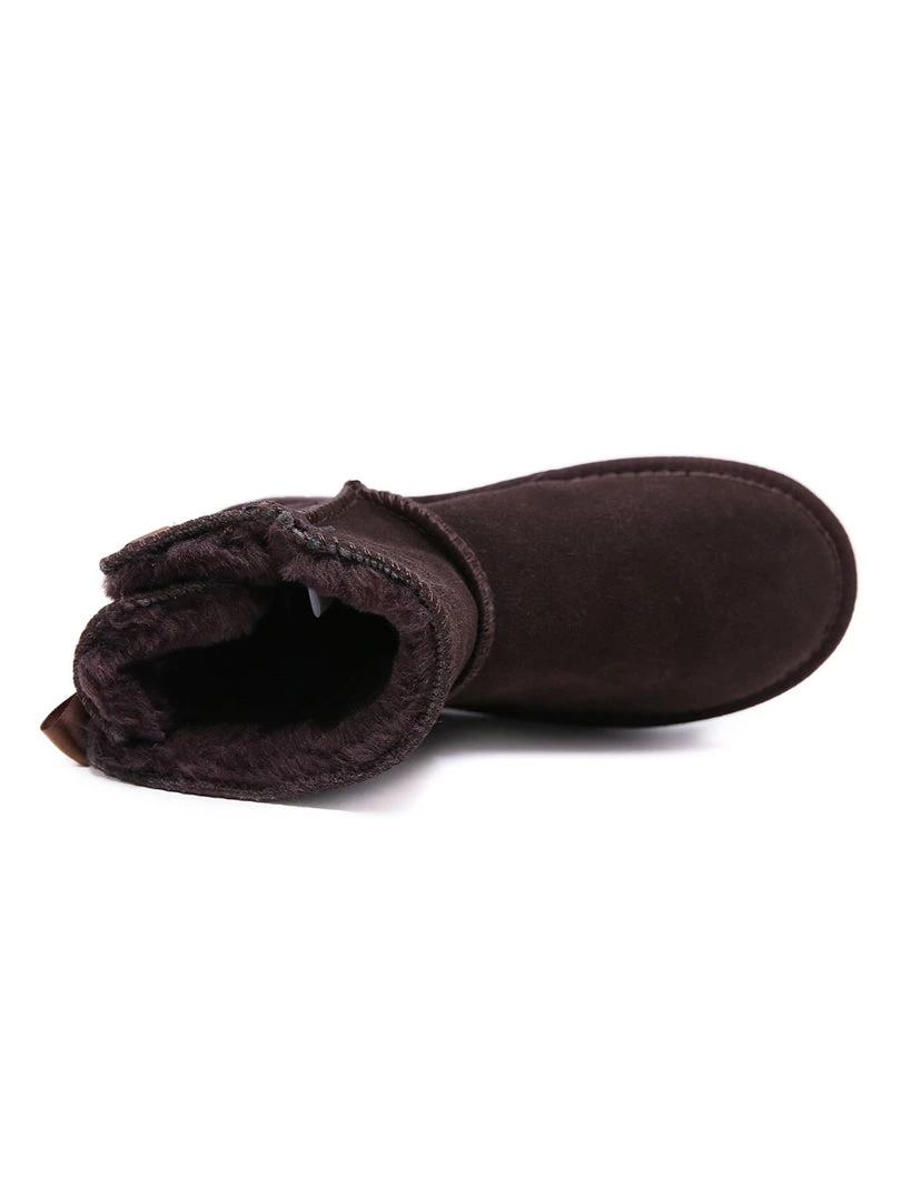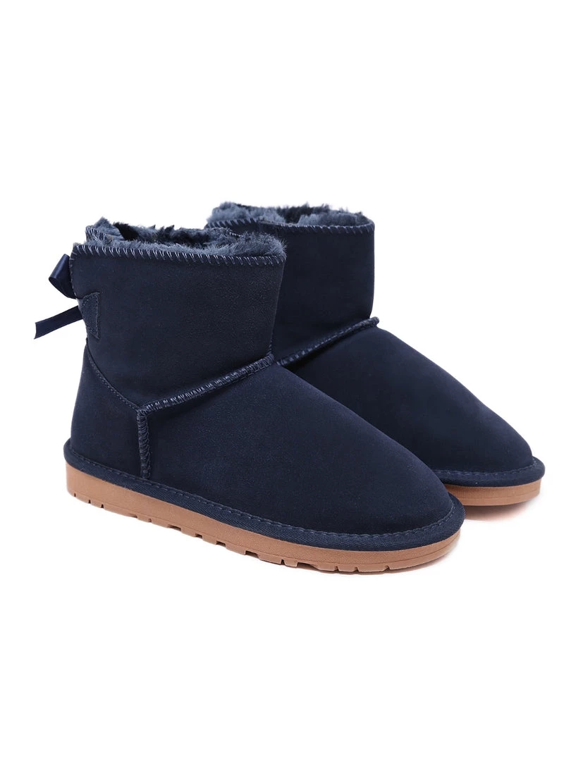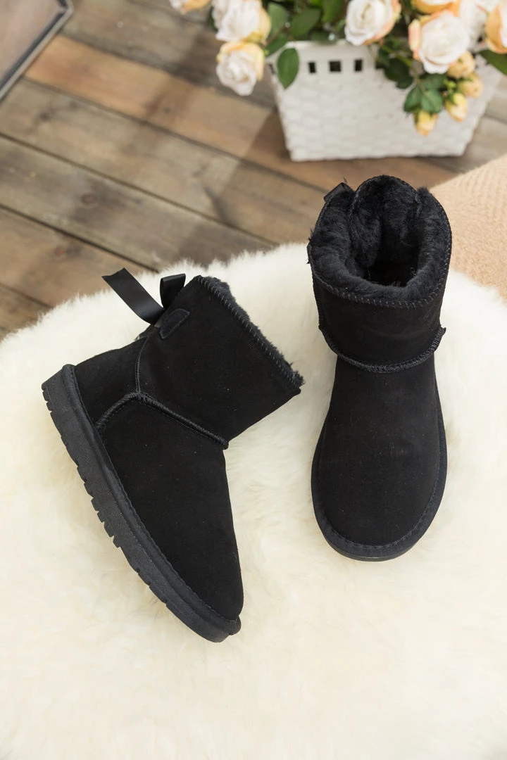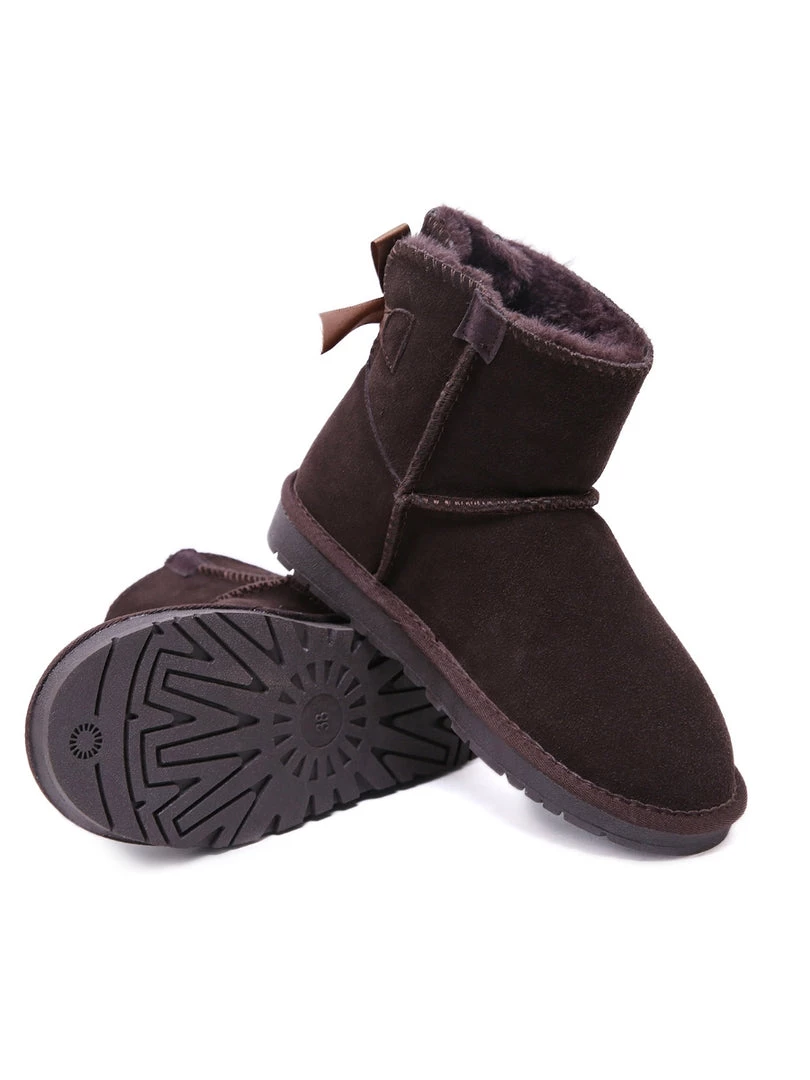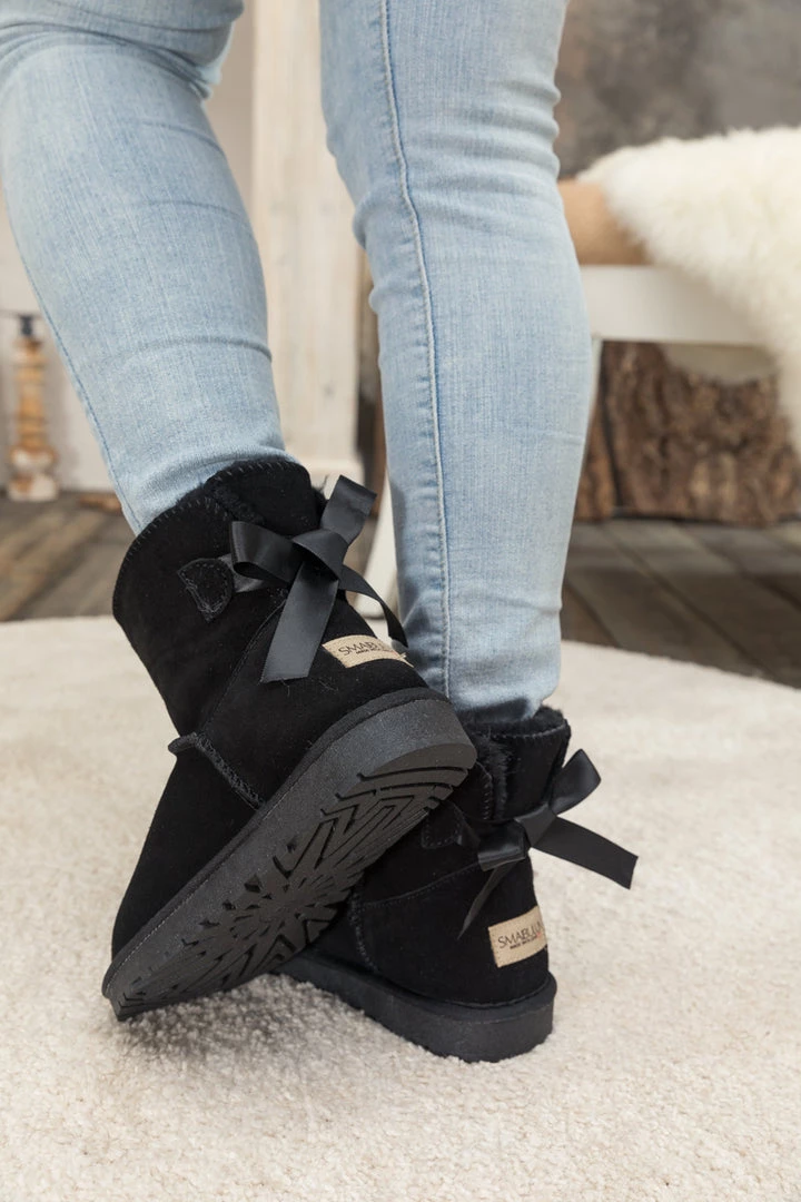 A bold bow detail in back puts a fun feminine twist on the classic shearling style in these genuine suede boots. A plush faux fur lining cushions your feet in supreme softness and warmth.
