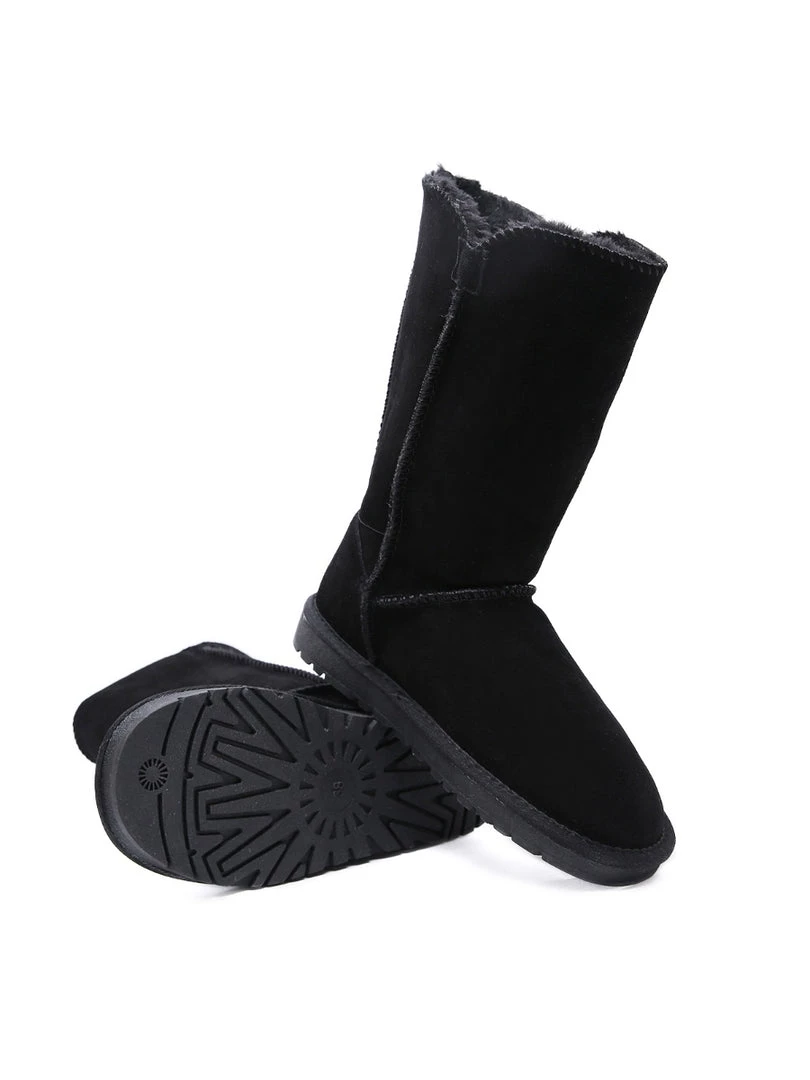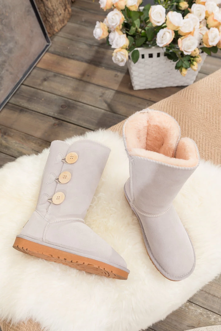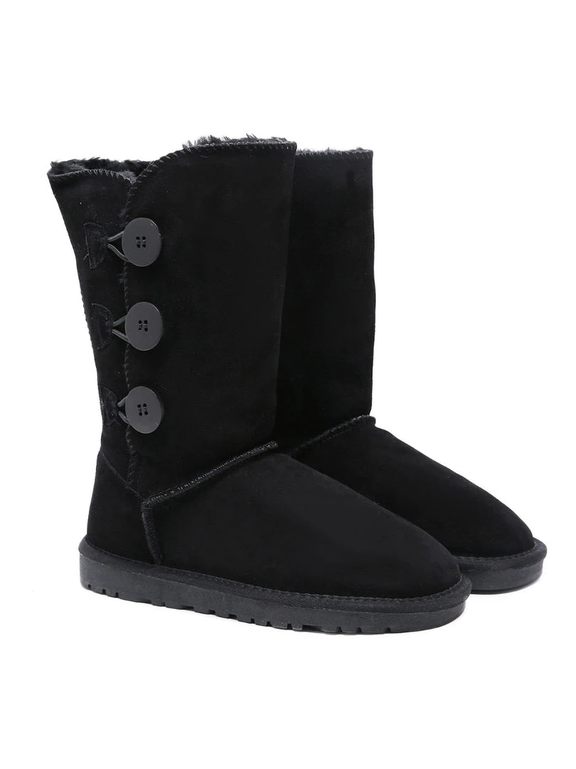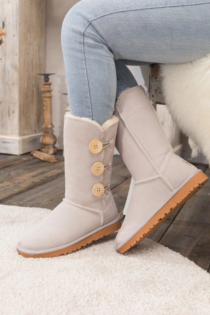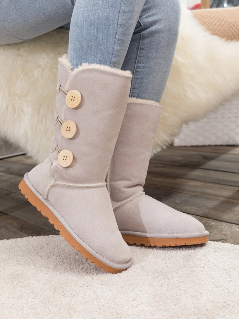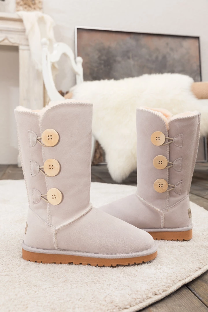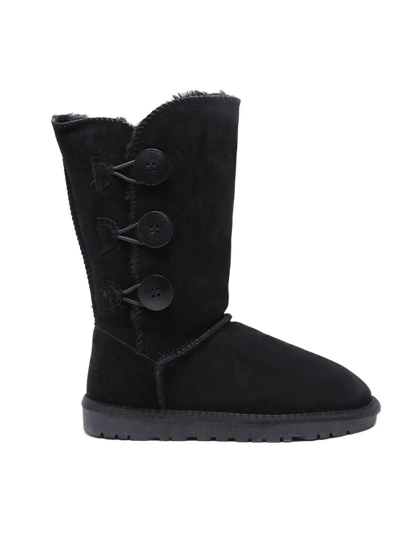 Stay warm in chic, eye-catching style when you pull on these genuine suede boots featuring plush faux fur-lining and classic side button design.