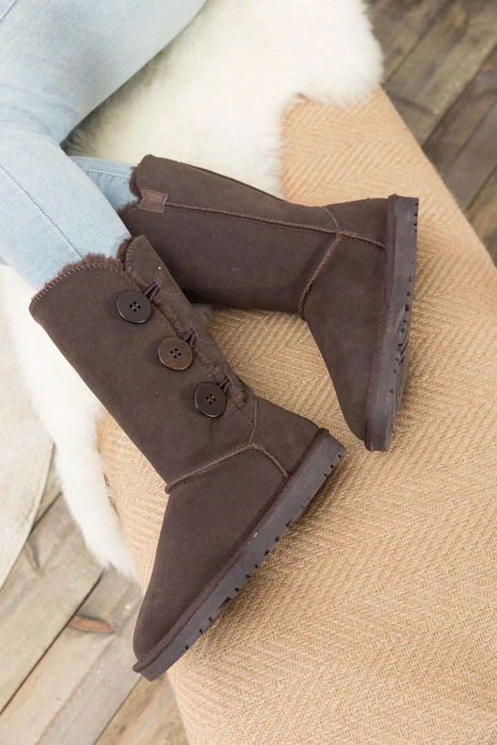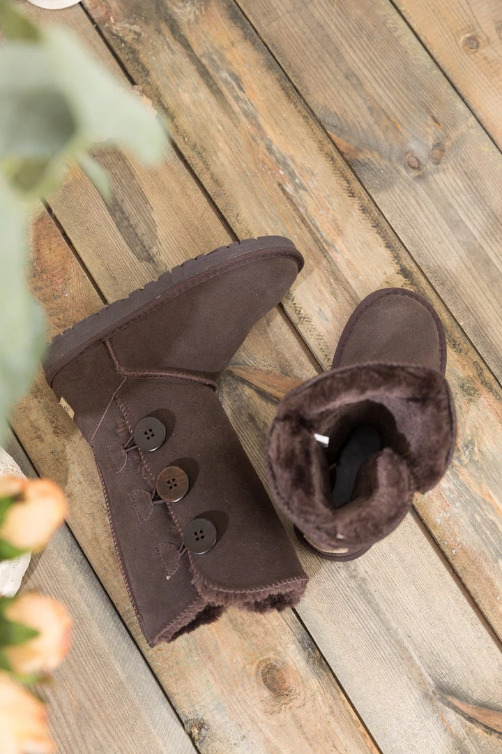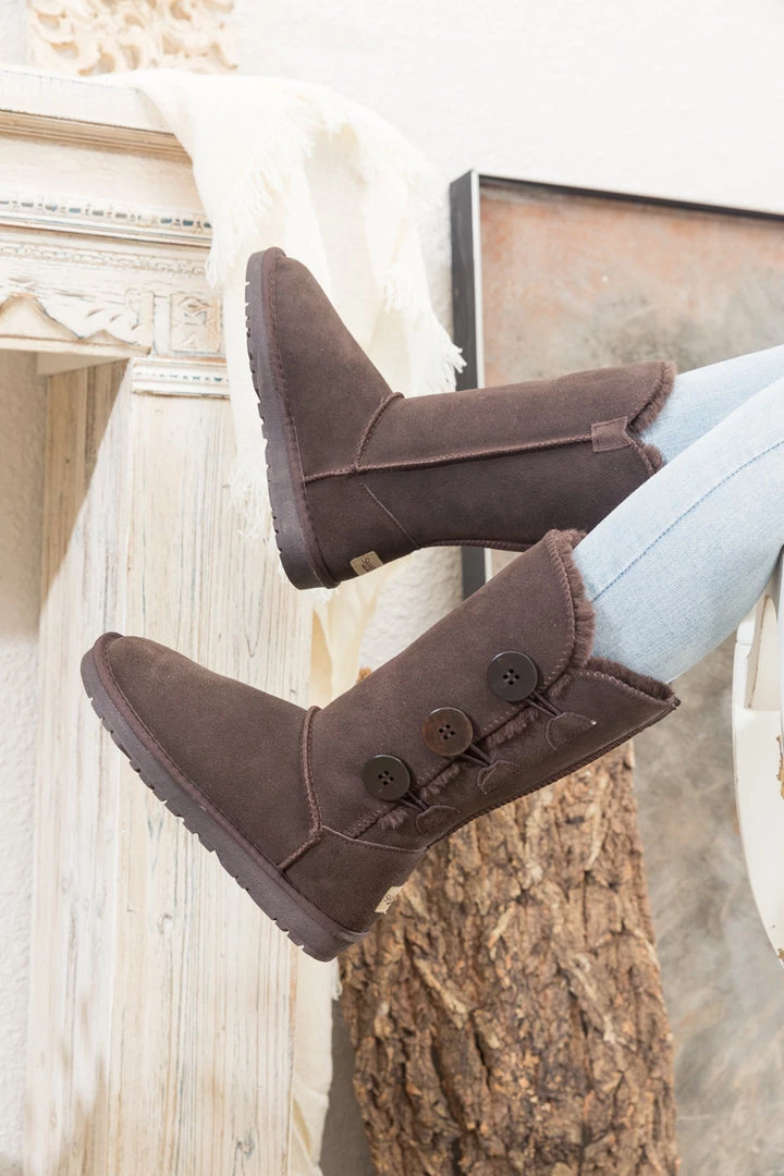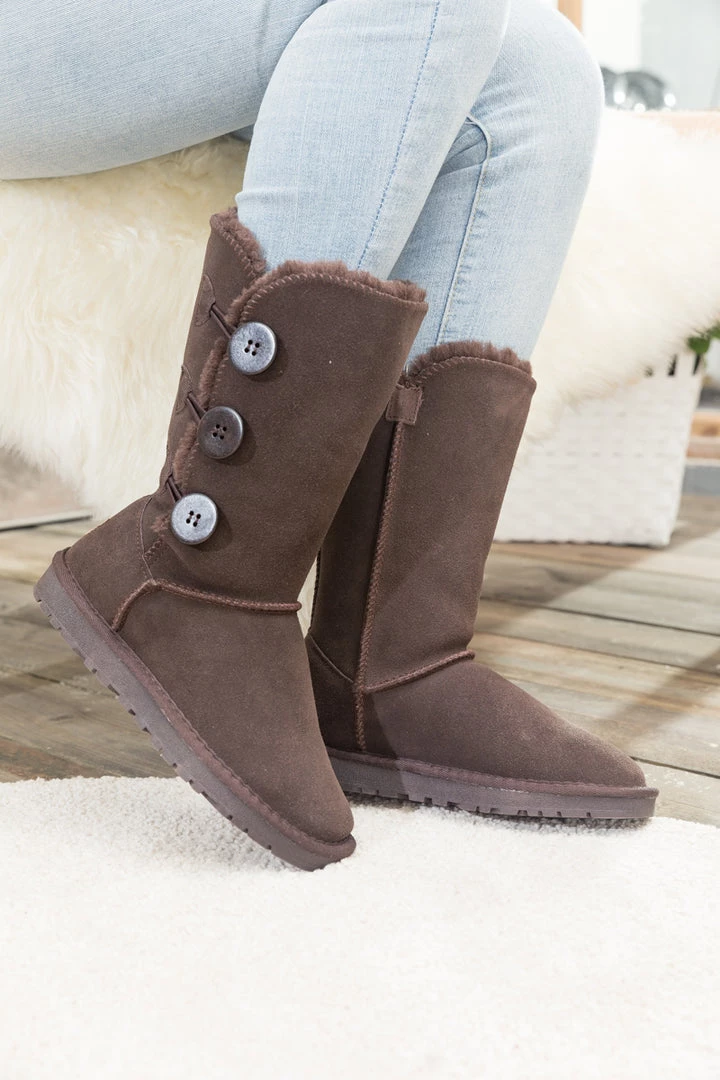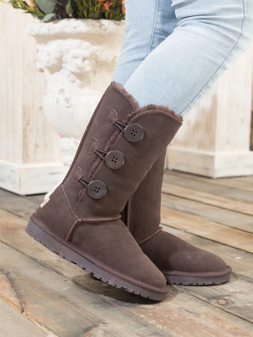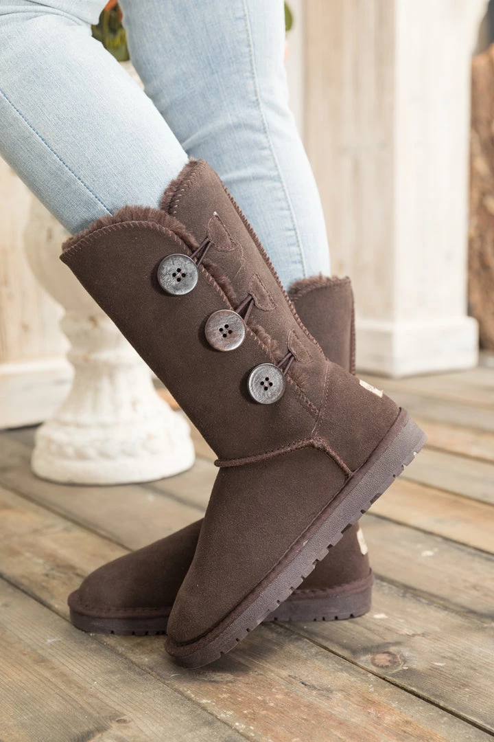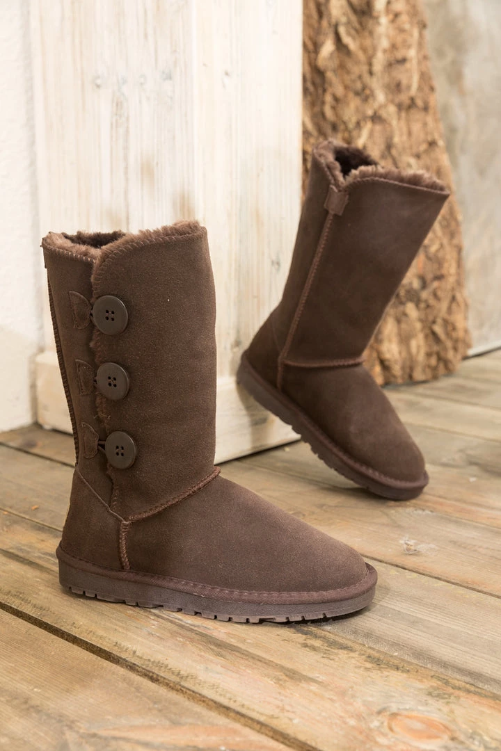 Stay warm in chic, eye-catching style when you pull on these genuine suede boots featuring plush faux fur-lining and classic side button design.