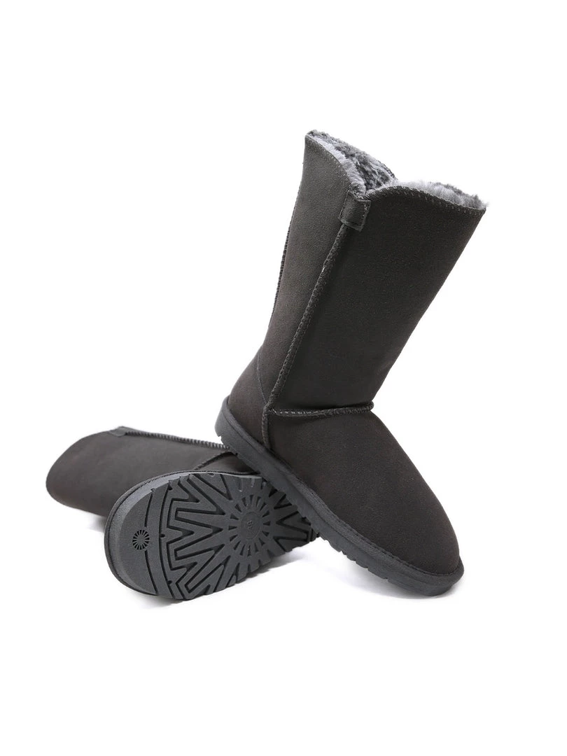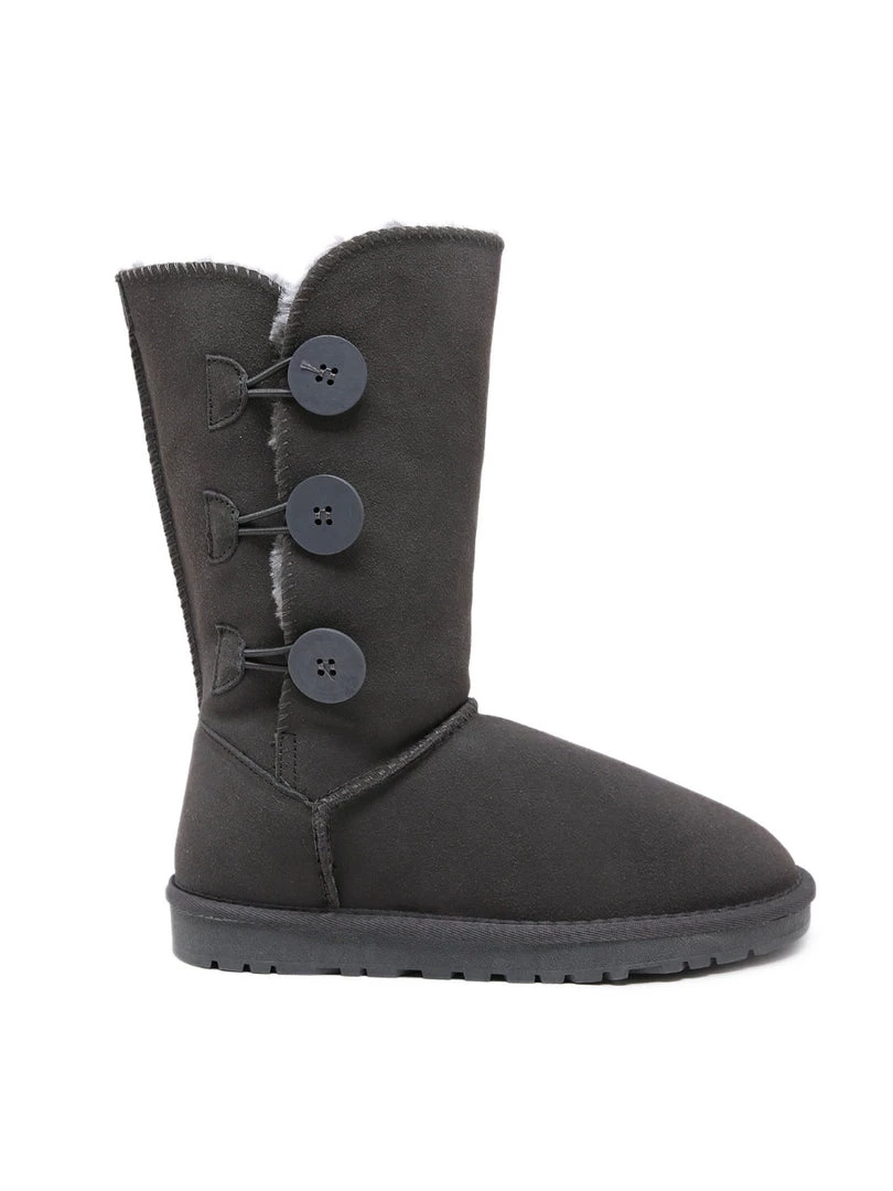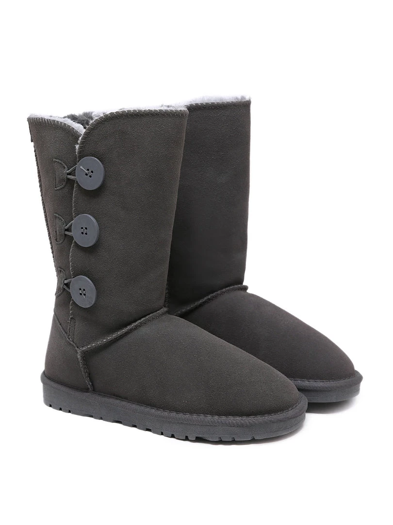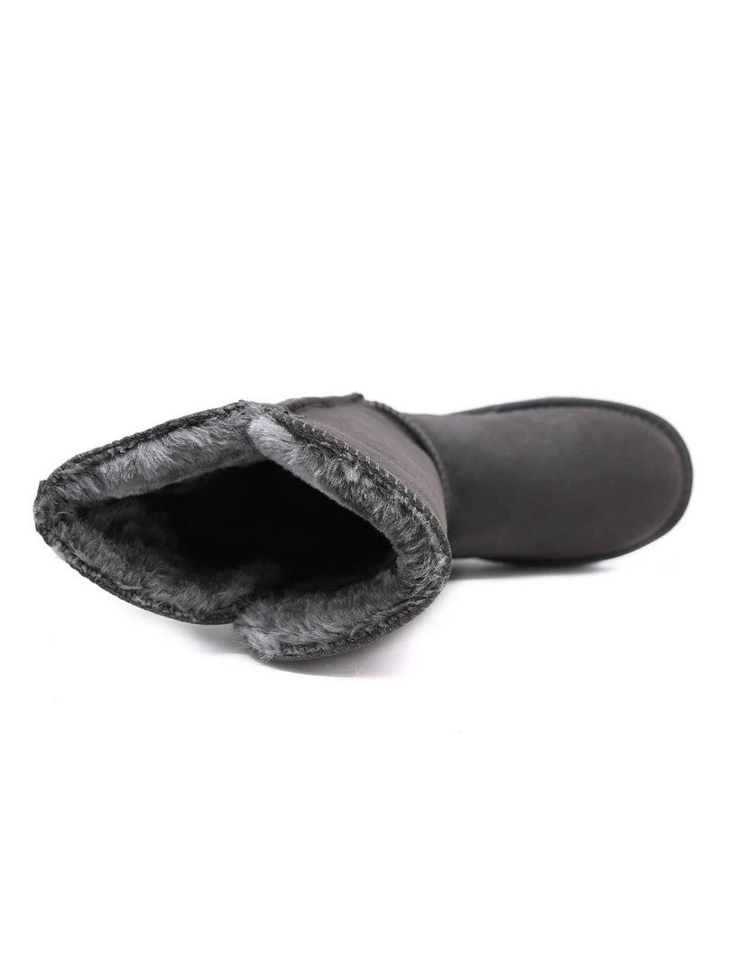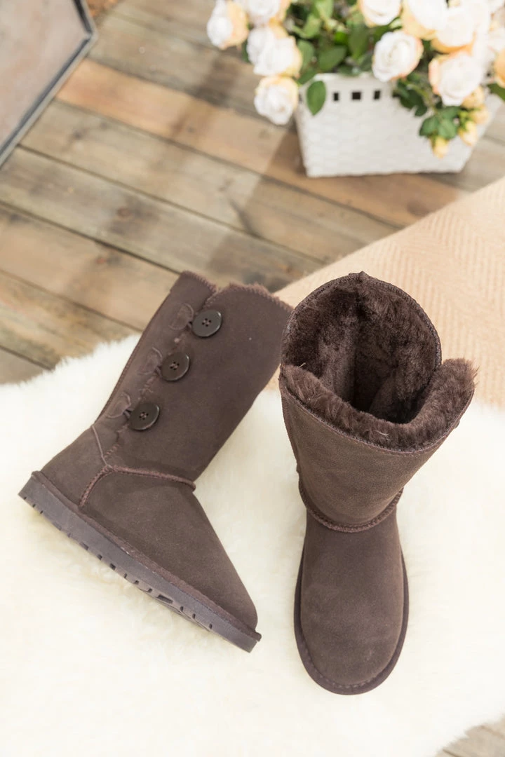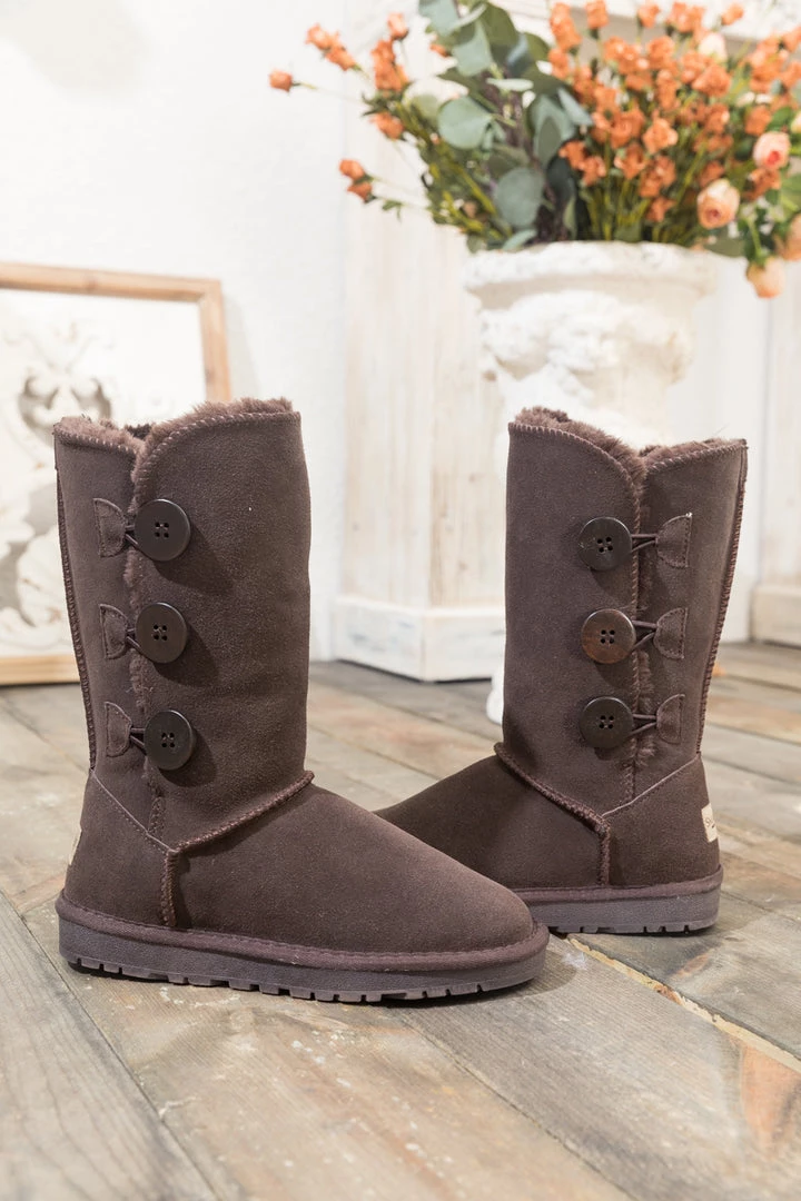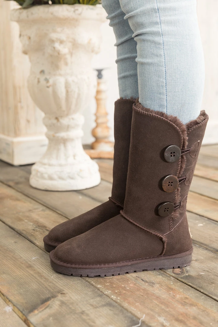 Stay warm in chic, eye-catching style when you pull on these genuine suede boots featuring plush faux fur-lining and classic side button design.