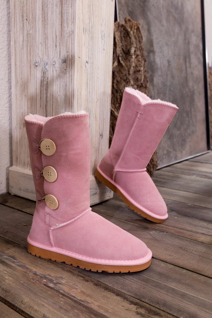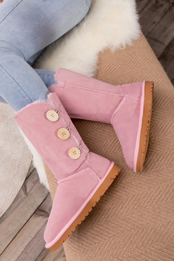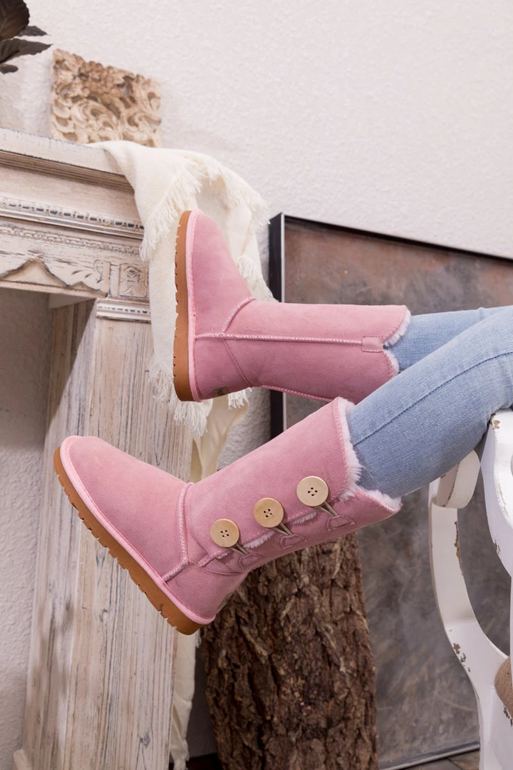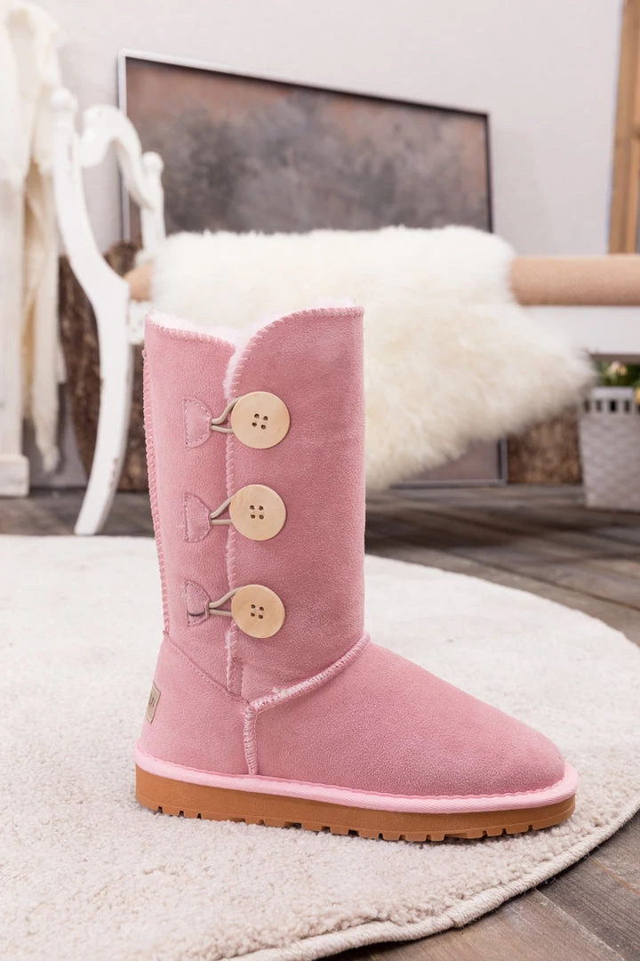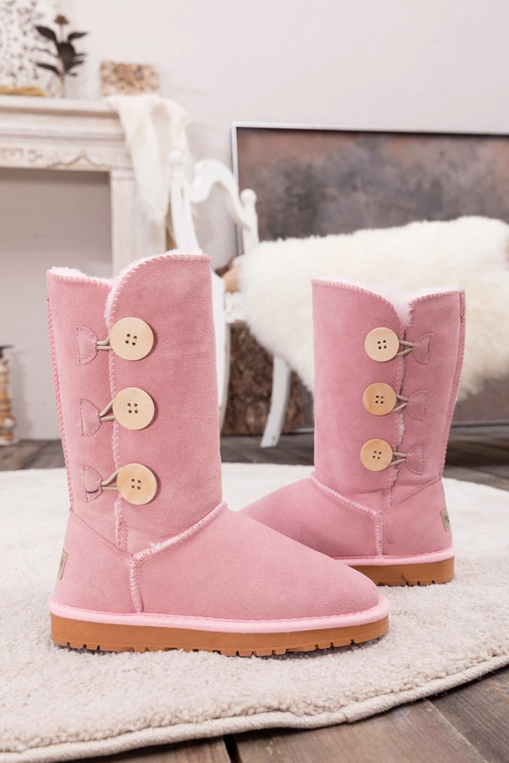 Stay warm in chic, eye-catching style when you pull on these genuine suede boots featuring plush faux fur-lining and classic side button design.