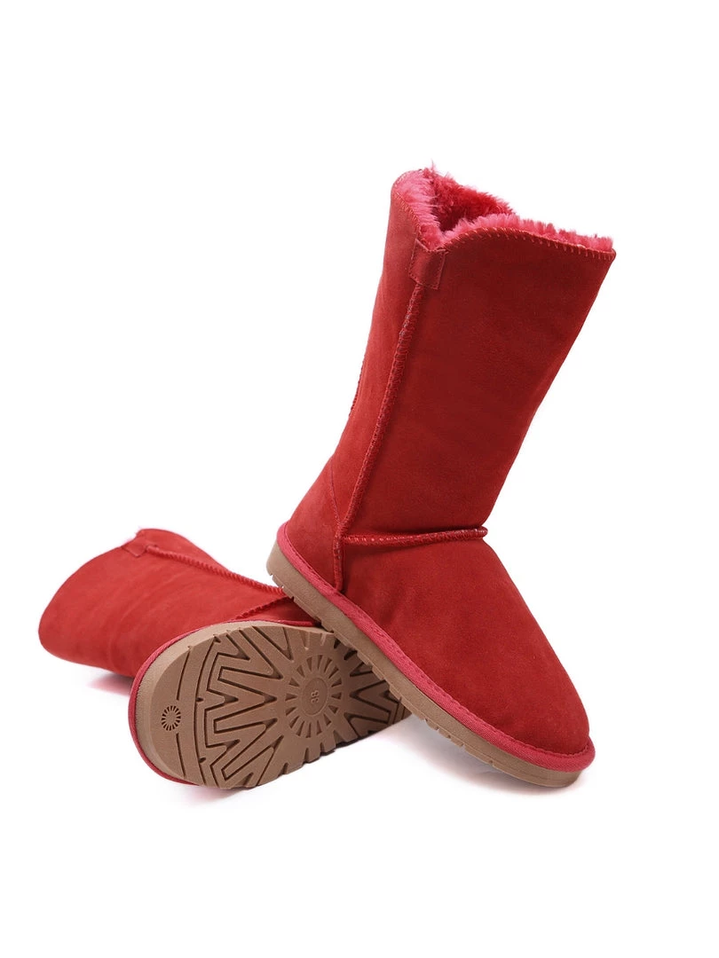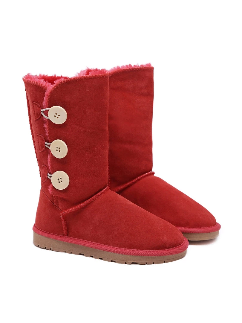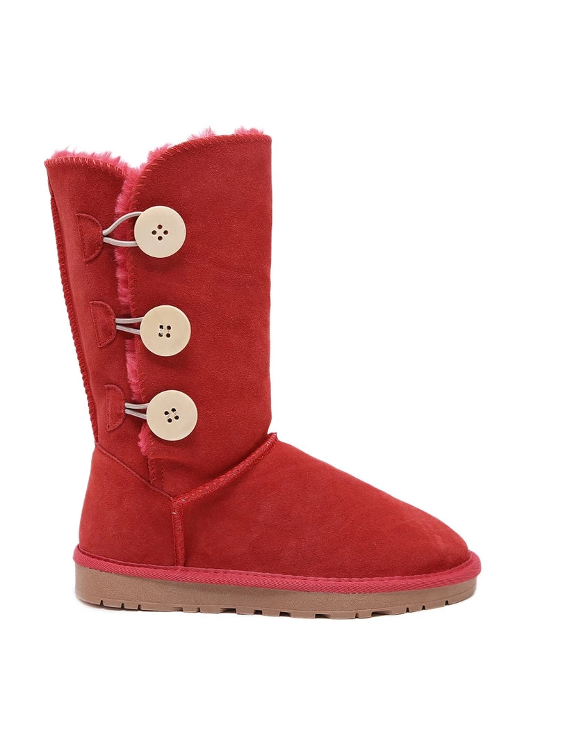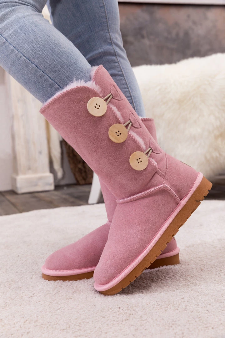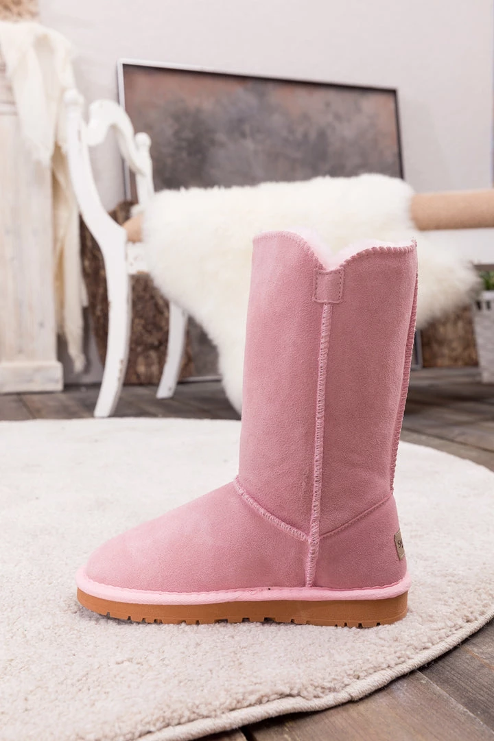Stay warm in chic, eye-catching style when you pull on these genuine suede boots featuring plush faux fur-lining and classic side button design.